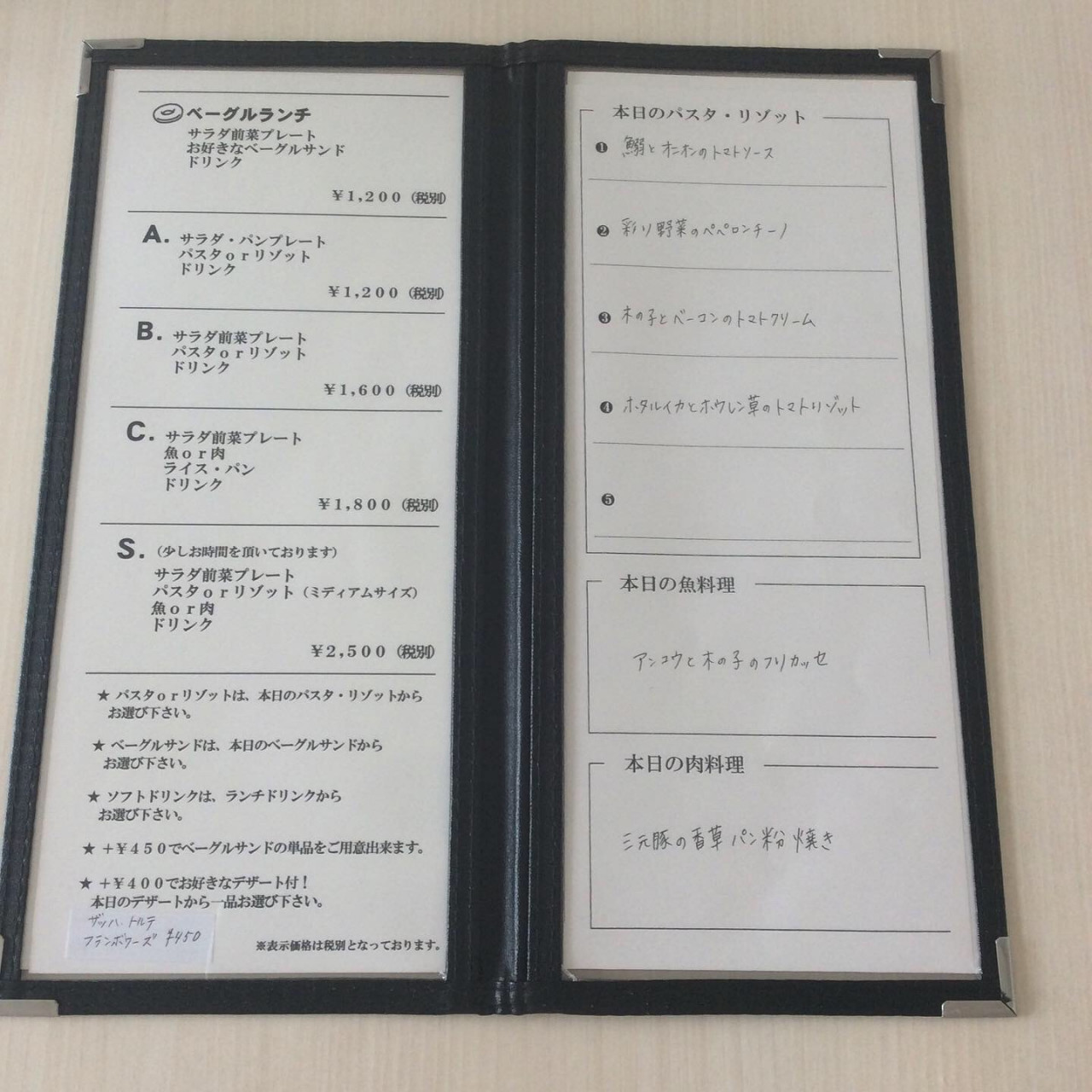 今週のランチメニューになります。オススメは【木の子とベーコンのトマトクリーム】です。