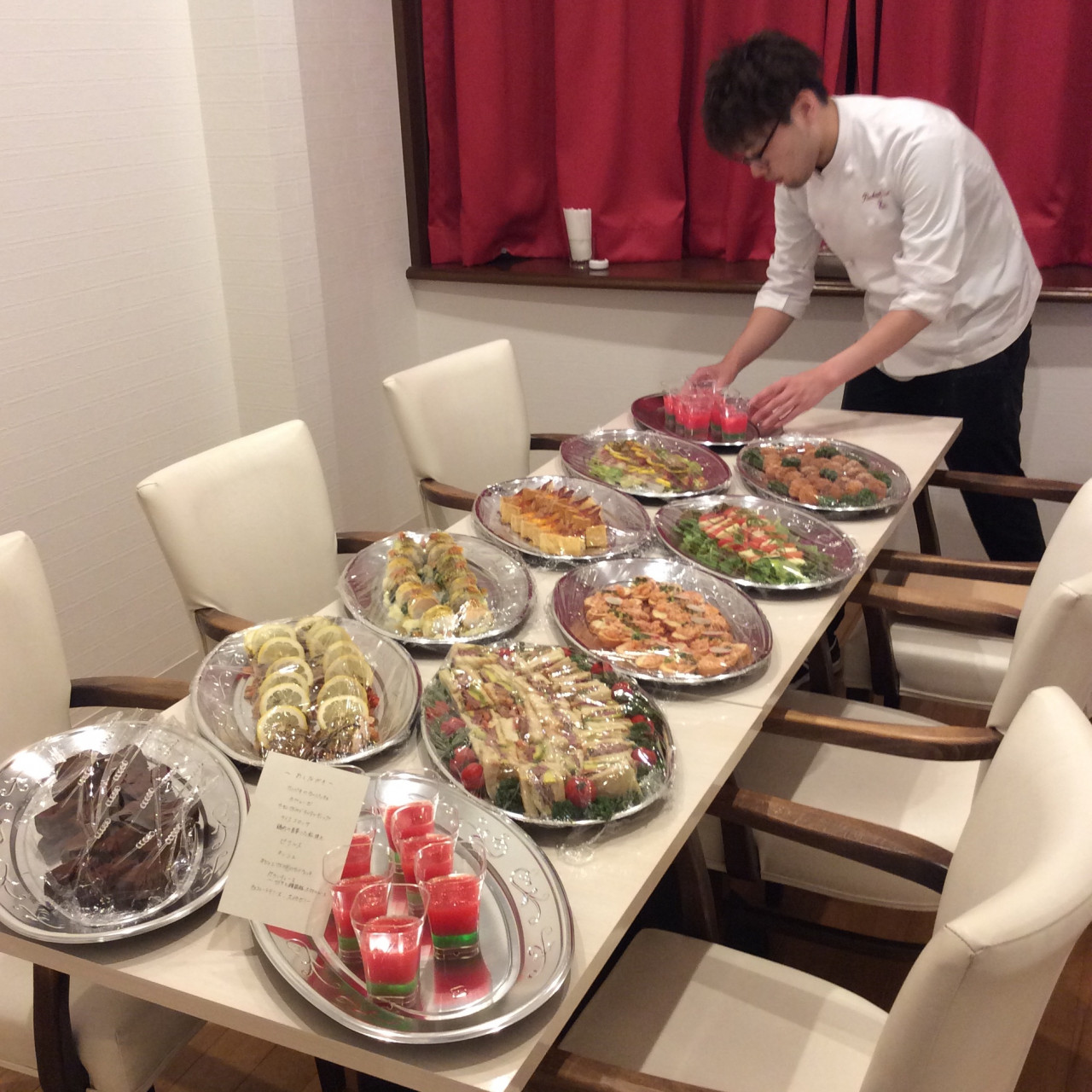 ケータリング承ります 2019/08/09 こんばんはエルコレです! ケータリング承ります! こちらの写真は 1人あたり4,000円で 14人前となります。 料理は3万円から受け付けております。 場所により配達も致しますので 是非ご利用ください!