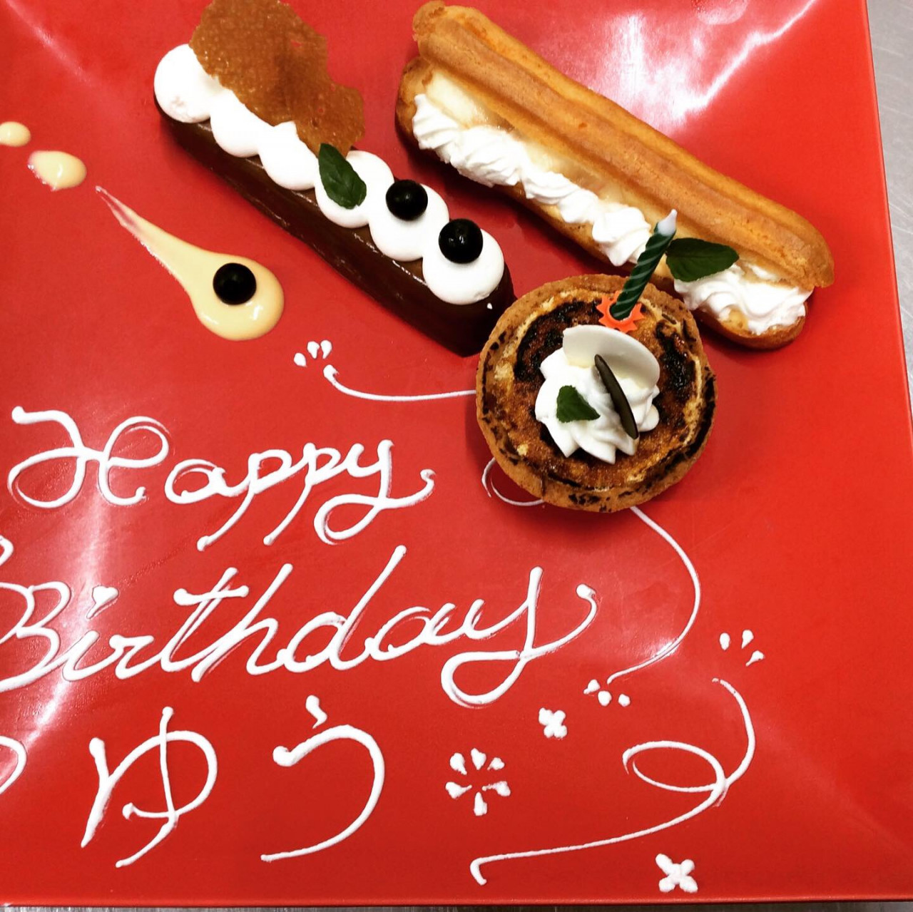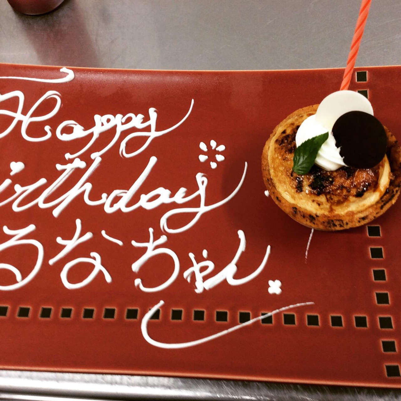 お祝いプレート バースデープレートご予約受け付けてます! 2019/08/29 こんにちは!エルコレです! メッセージプレートのご予約承っております! お誕生日や記念日などお祝いやパーティーにご利用くださいませ! 写真は「コングラッチェレーション オン ユアー マリッジ」【結婚おめでとう】 と書かせていただきました! お祝いプレート(ケーキ盛り合わせ) 1000円+税 事前にご予約で単品ケーキ サービスデザート コースデザートでもメッセージお付けできます。 ご予約お問い合わせお待ちしております!
