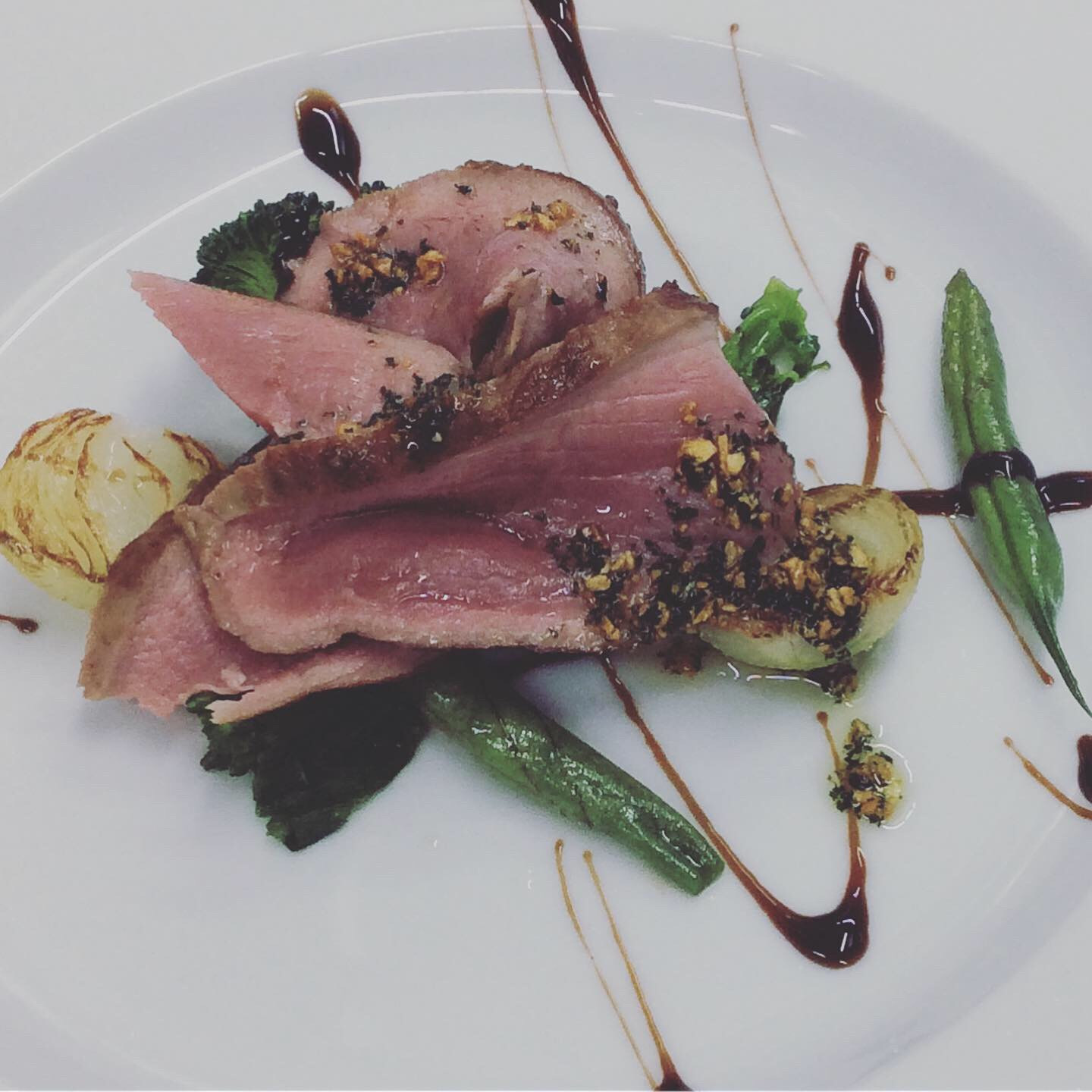 【気仙沼産 メカジキのステーキ】と【牛肉のタリアータ バルサミコスソース】です。