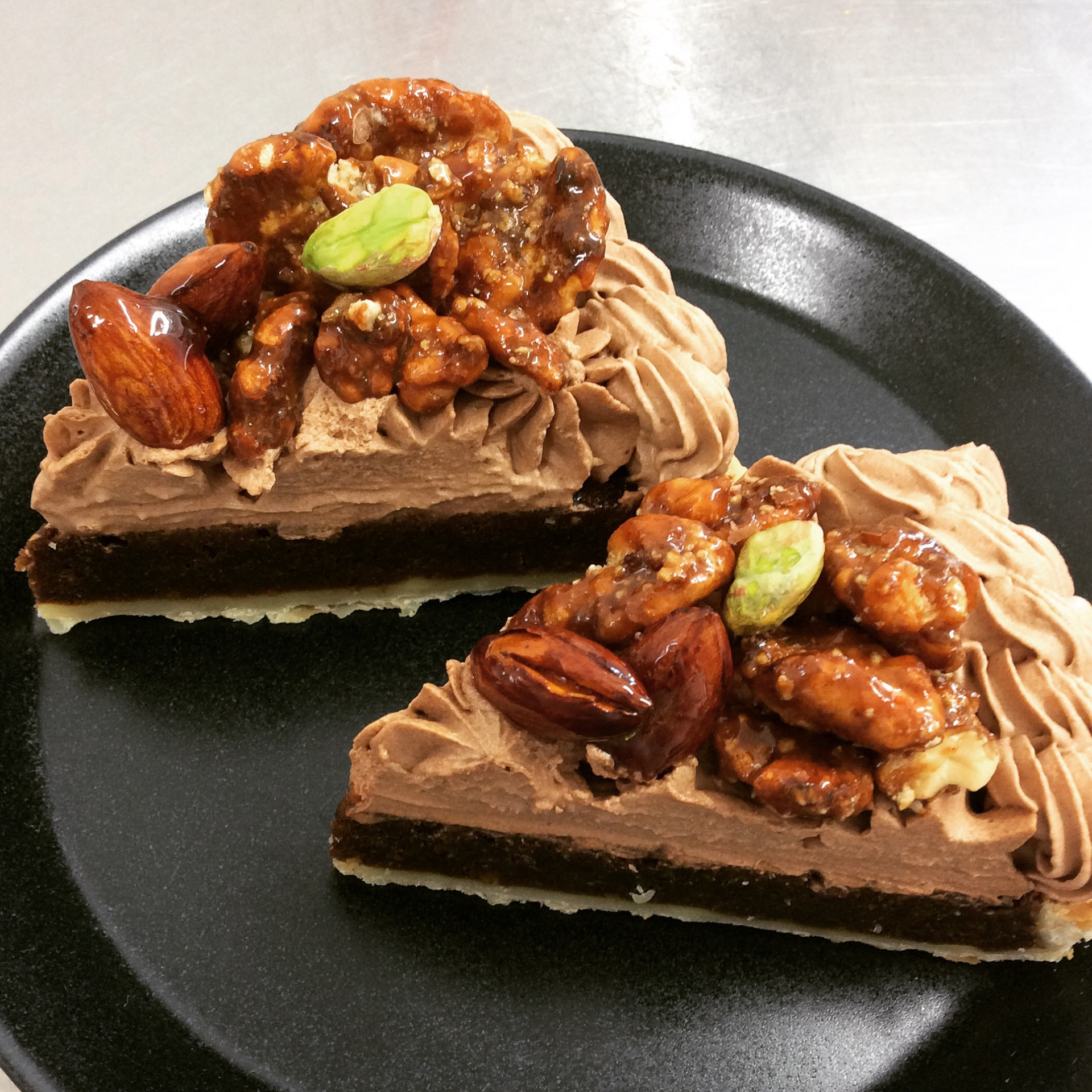 木のみのキャラメリゼのコーヒーパイタルト 2020/10/15 こんにちは!エルコレです! 新しいケーキのご紹介です! 木の実のキャラメリゼのコーヒーパイタルト 本日から仕上がりました! コーヒーの風味を大切にじっくり焼き上げた自家製パイタルトにチョコレート生クリームを絞り、ザクザクカリカリにキャラメリゼしたアーモンド、クルミ、ピスタチオを贅沢に飾り付けました!! テイクアウトでもお召し上がりでも大丈夫です!