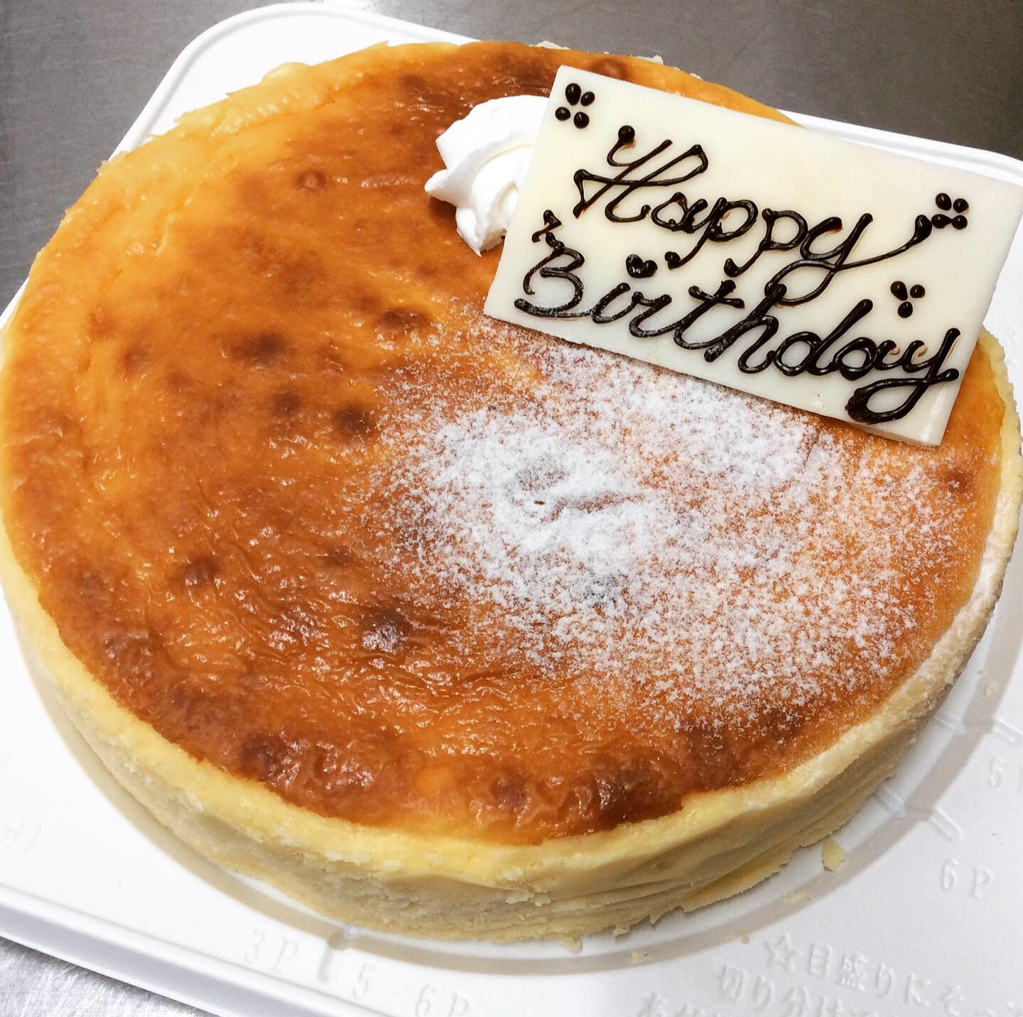 エルコレ特製チーズケーキ 2020/11/16 こんにちは。 レストランバー・エルコレです。 こちらの写真はチーズケーキ18cmでございます。 エルコレの人気ケーキの自家製ベイクドチーズケーキをお誕生日やお祝い仕様にホールでも販売できます。 6号 ¥3,000税 男性の方や幅広い年齢層で食べやすいチーズケーキになっております。 要予約になります。 お電話・お問い合わせお待ちしてます。