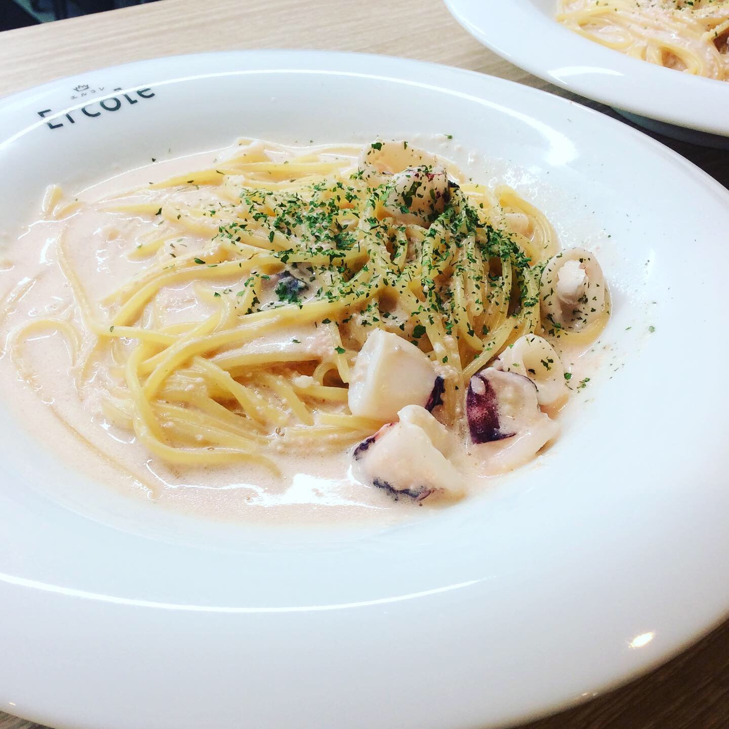 ヤリイカと明太子のクリームパスタ 2020/12/04 今週のランチパスタ③ヤリイカと明太子のクリームパスタです。 エルコレにきたら絶対クリームパスタと言われるお客様もいらっしゃいます(^-^) 今週も一番人気です。 是非、エルコレのクリームパスタご賞味ください!! お待ちしてます。