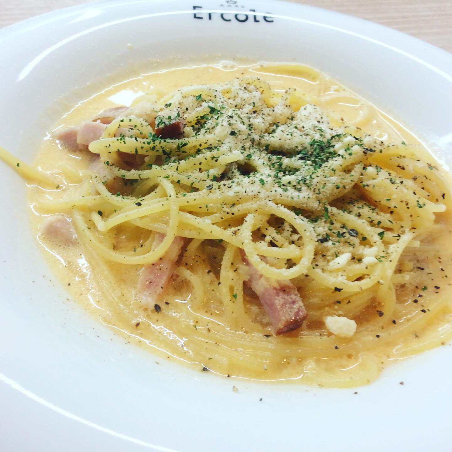 カルボナーラ登場です。 2020/12/11 今週のランチメニューの③カルボナーラです。 定番カルボナーラのひさしぶりの登場です。 是非ご賞味ください。 土日のランチはエルコレでお過ごしください。 ご利用お待ちしてます。