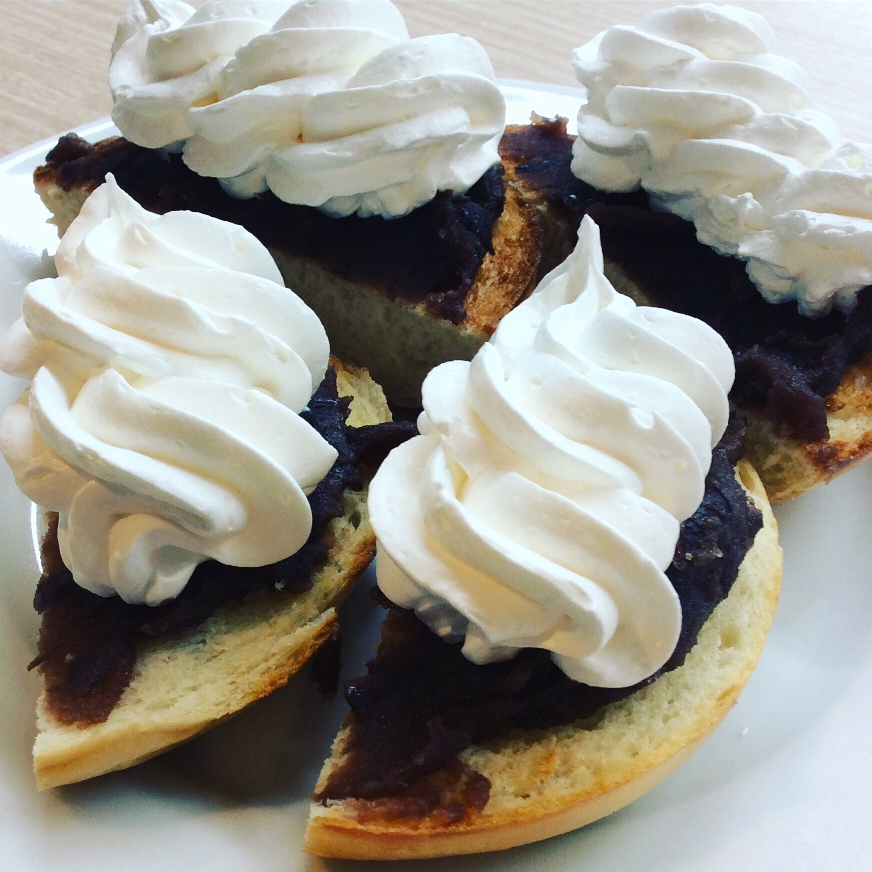 つぶあん生クリーム 2020/12/17 こんにちは😃 レストランバー・エルコレです。 エルコレ人気ベーグルの【つぶあん生クリーム】です。 単品¥480になります。 イートインはもちろん、テイクアウトもできます。 ご来店お待ちしてます。