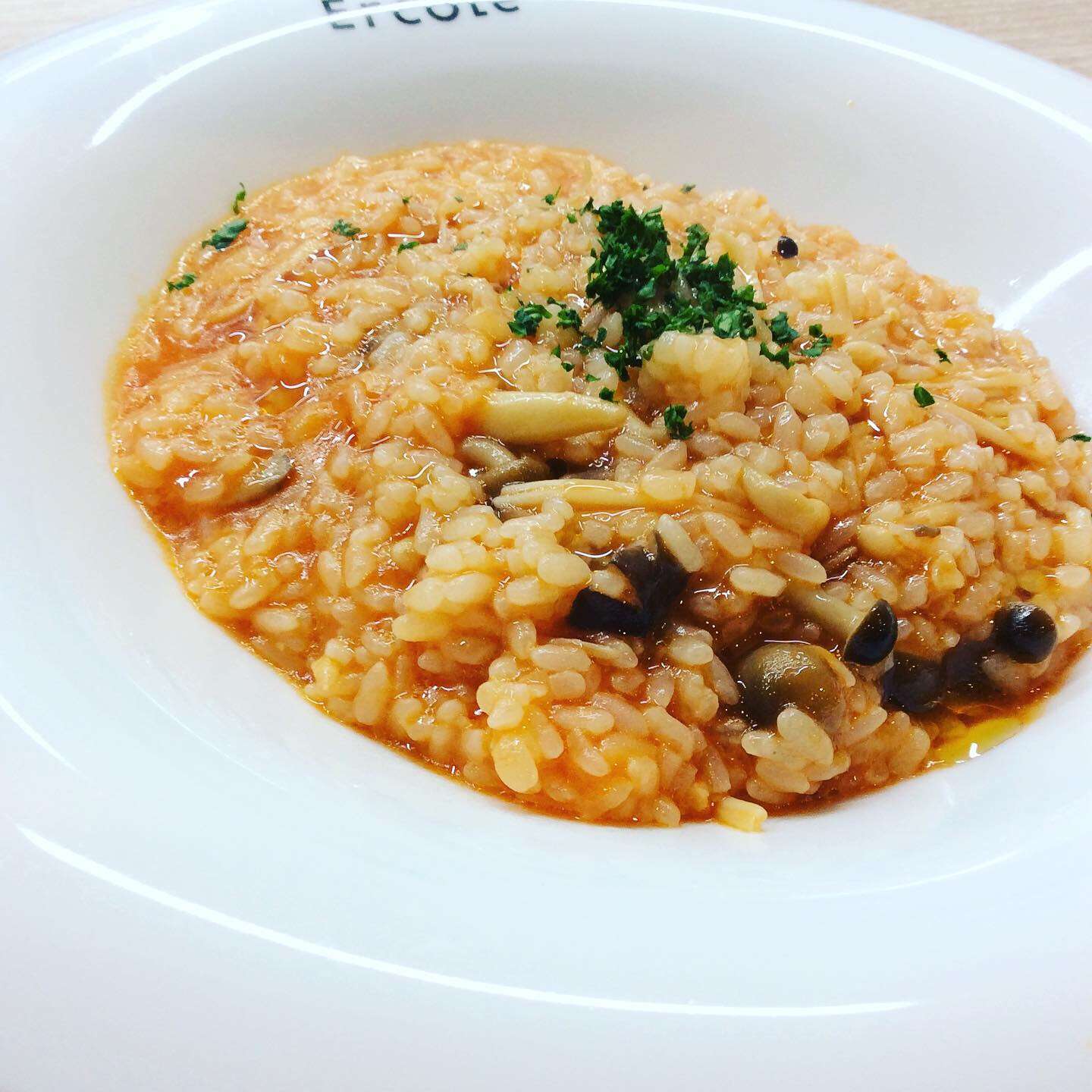 4種の木の子のトマトリゾット 2021/01/29 今週のランチリゾットの【4種の木の子のトマトリゾット】です。 お子様からお年寄りまで幅広い方にオススメできます。 木の子はしめじ・エリンギ・えのき・マッシュルームが入ったトマトリゾットです。 是非、ご賞味ください。 ご来店お待ちしてます。