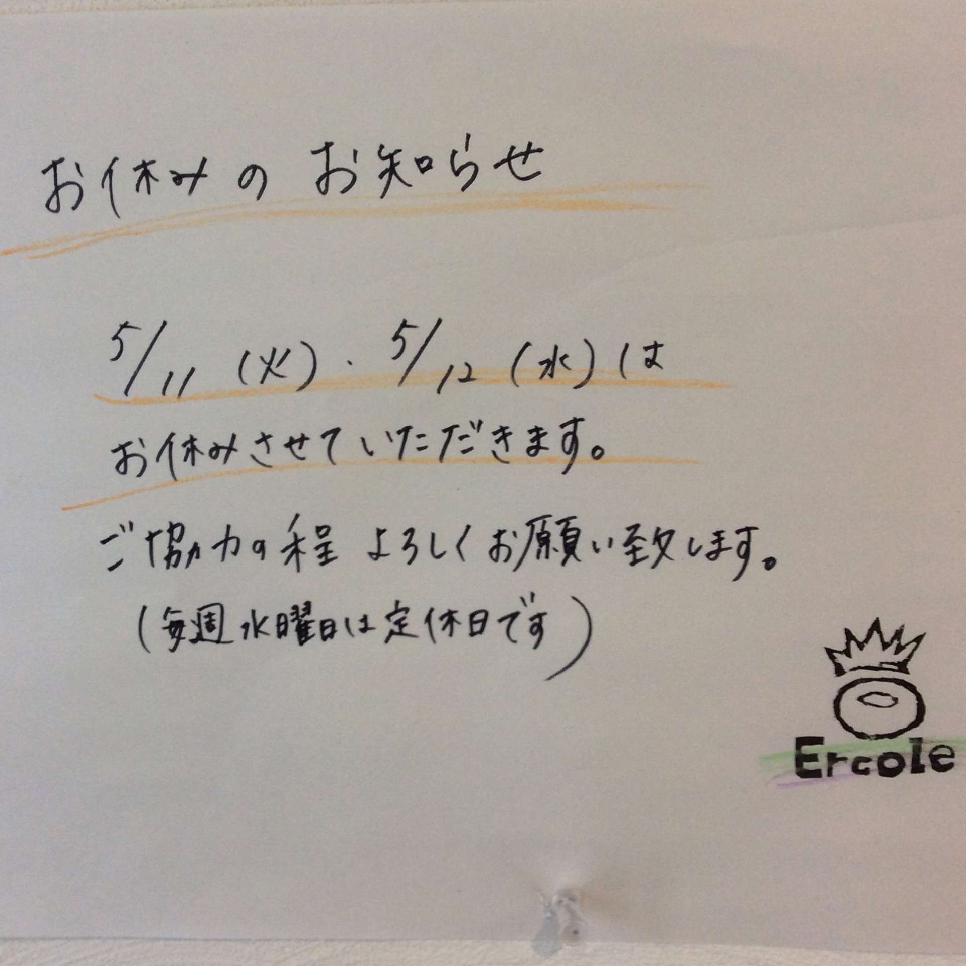 定休日のお知らせ