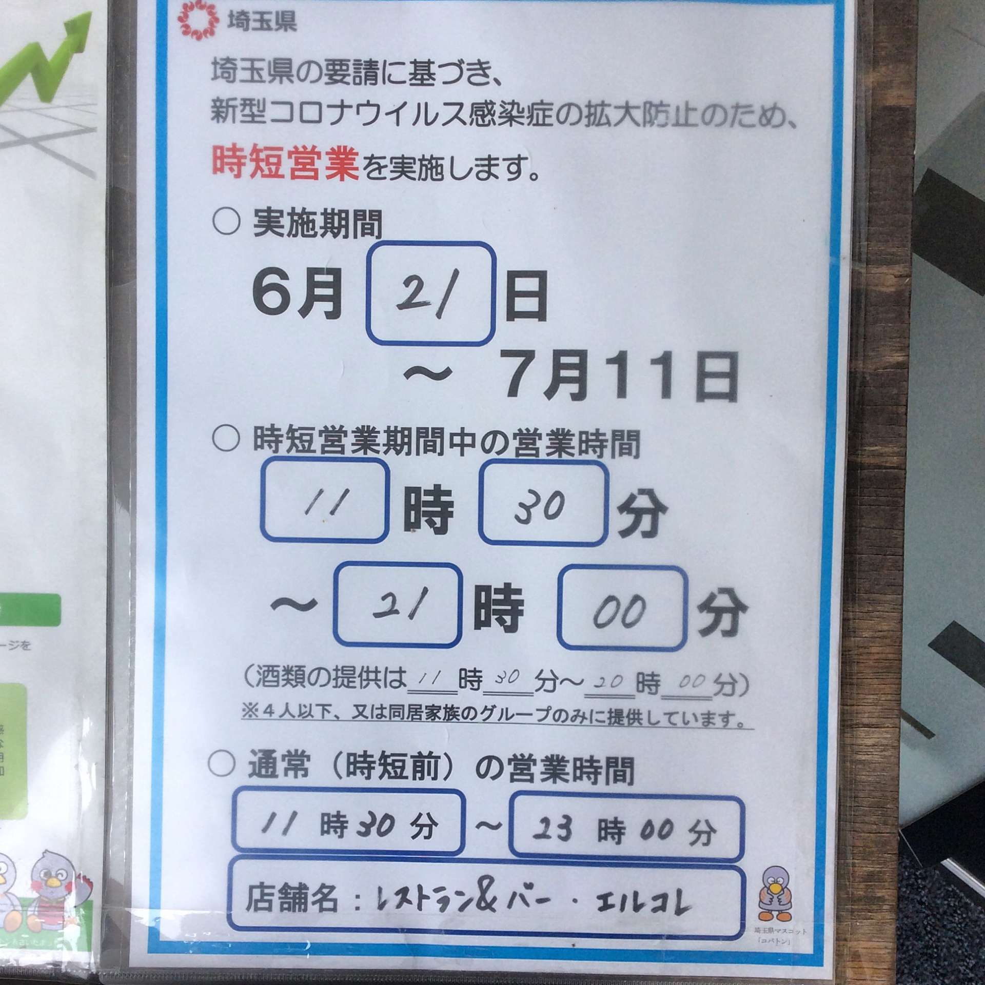 営業時間のお知らせです。