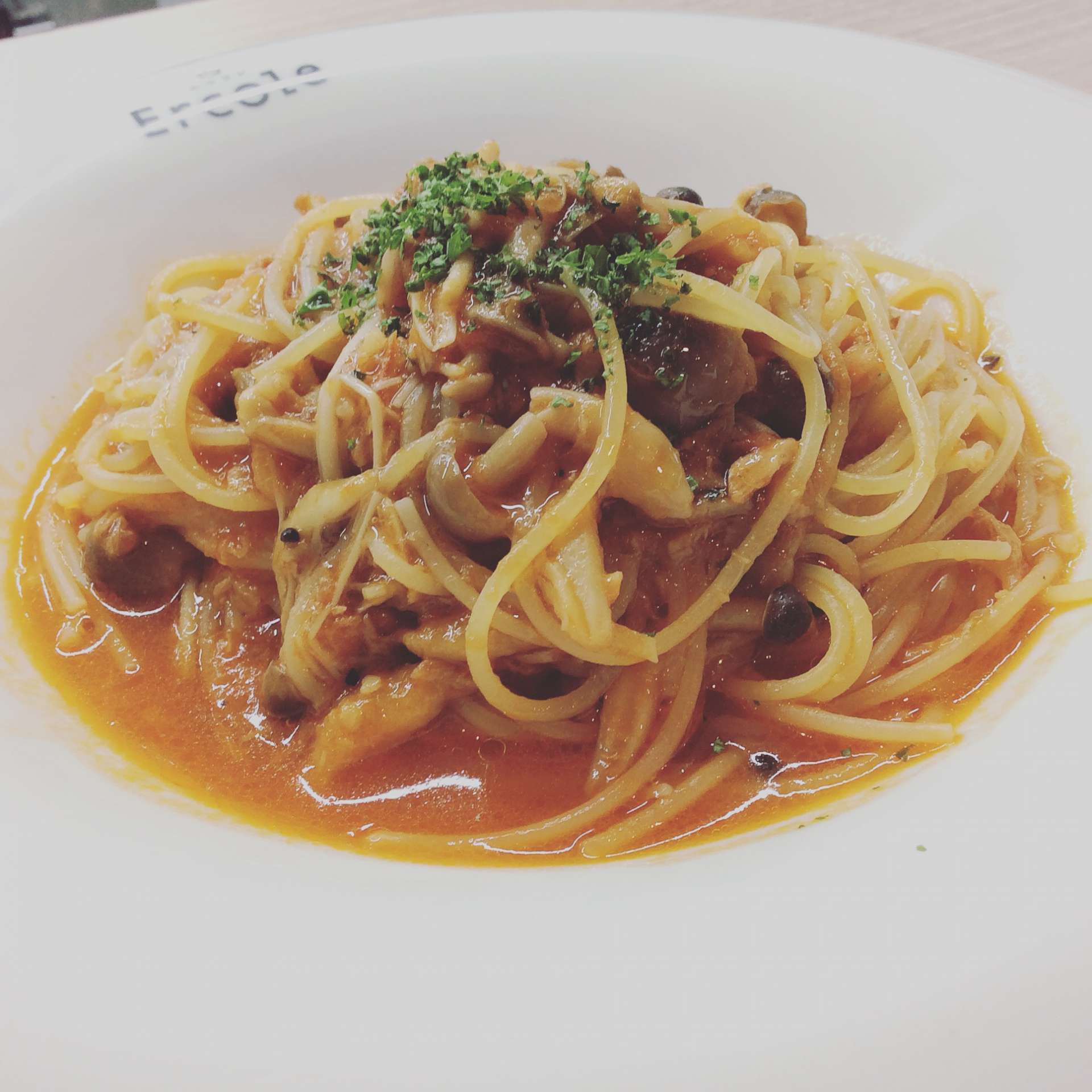 ボスカイオーラ 2021/07/23 こんにちは。レストランバー・エルコレです。 今日も暑いですね。 エルコレの店内涼しくしてお待ちしてます(*´∀`*) 写真はランチパスタ①ボスカイオーラです。 4種類の木の子とツナのトマトパスタです。 辛さ抜きなので、お子様にもオススメです。 ご来店お待ちしてます。