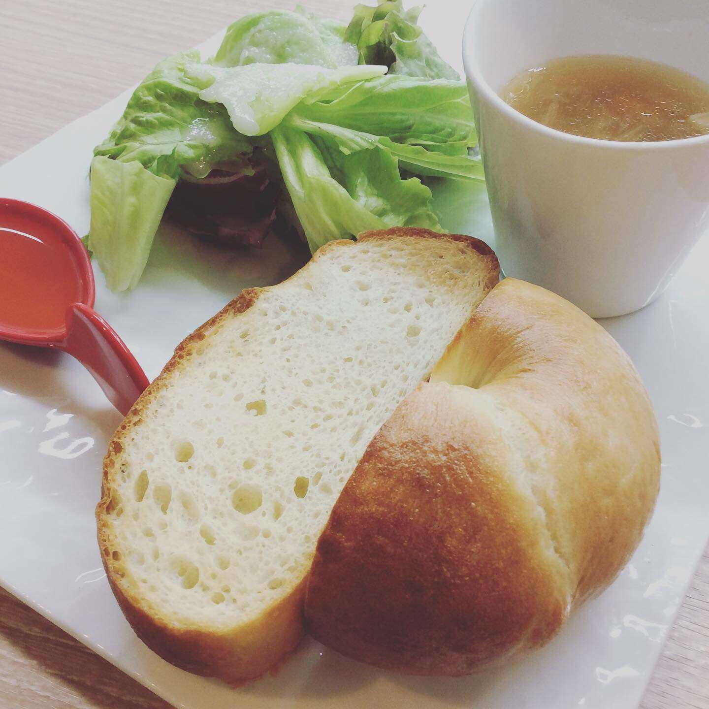 サラダ・スープ・自家製パンです。