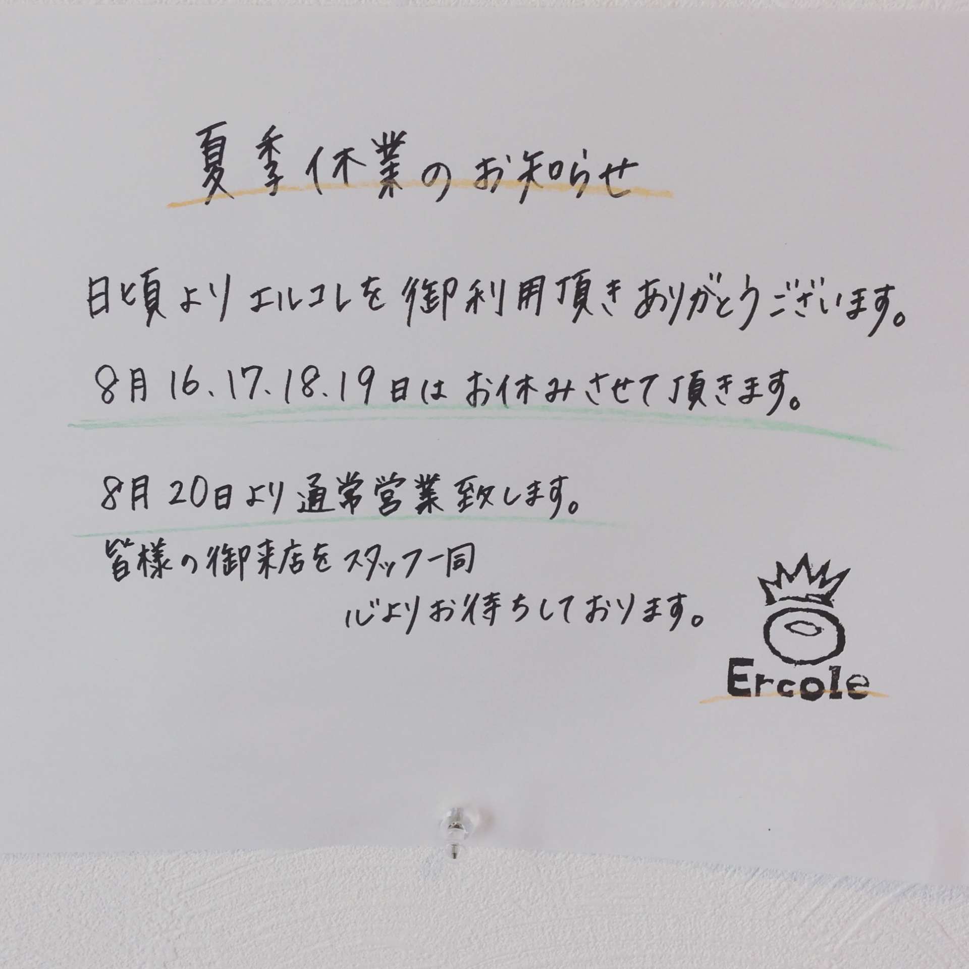 定休日のお知らせ