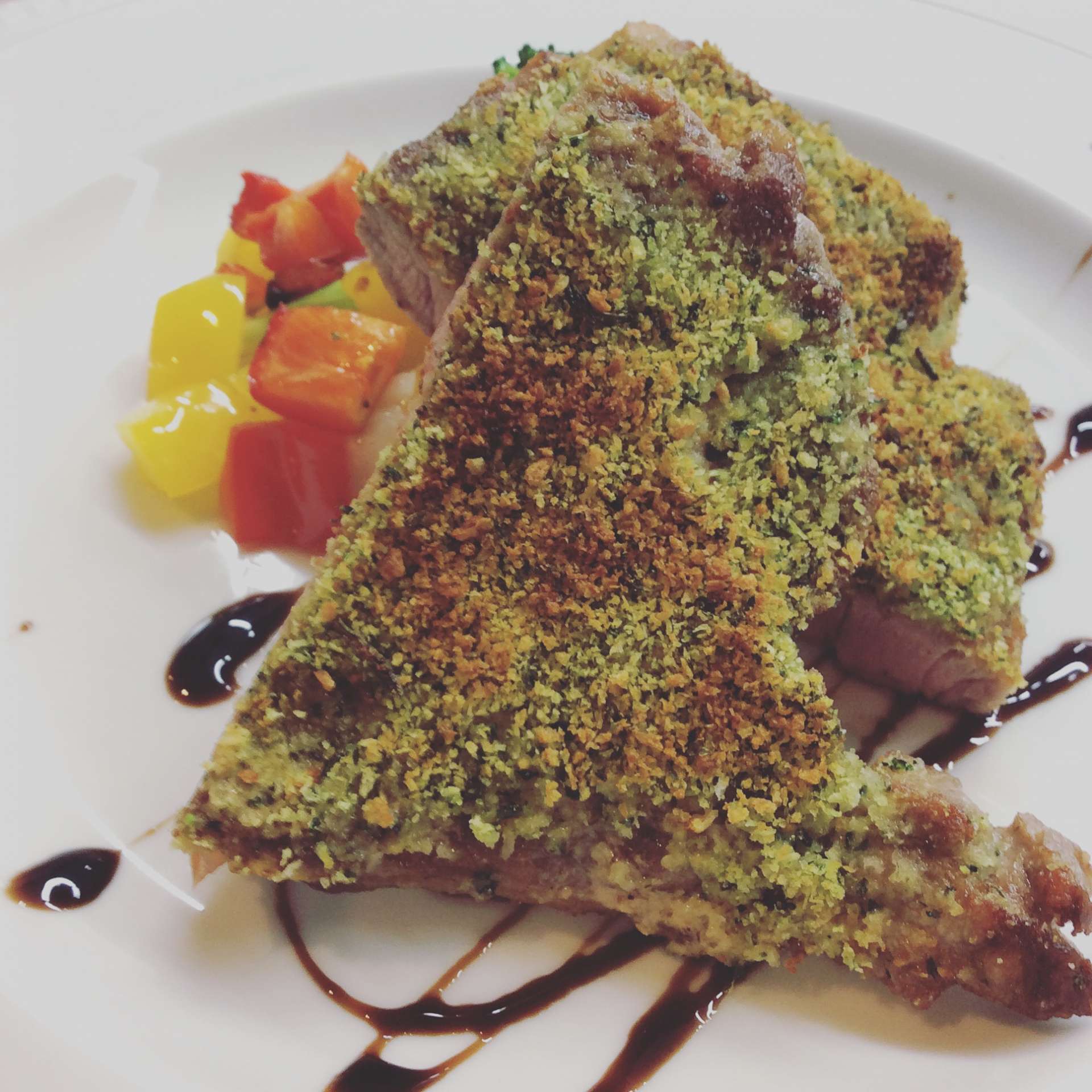 豚肩ロースの香草パン粉焼き 2021/11/19 レストラン&バー・エルコレです。 ランチタイムのお肉料理 【肩ロースの香草パン粉焼き】です。 サクサクの香草パン粉焼きの衣と肩ロースと絶妙の相性です。 こちらの写真はCコースです。 前菜プレートとドリンクのついたお得なセットです。 土日ランチあります。 是非、ご来店下さい(^-^)