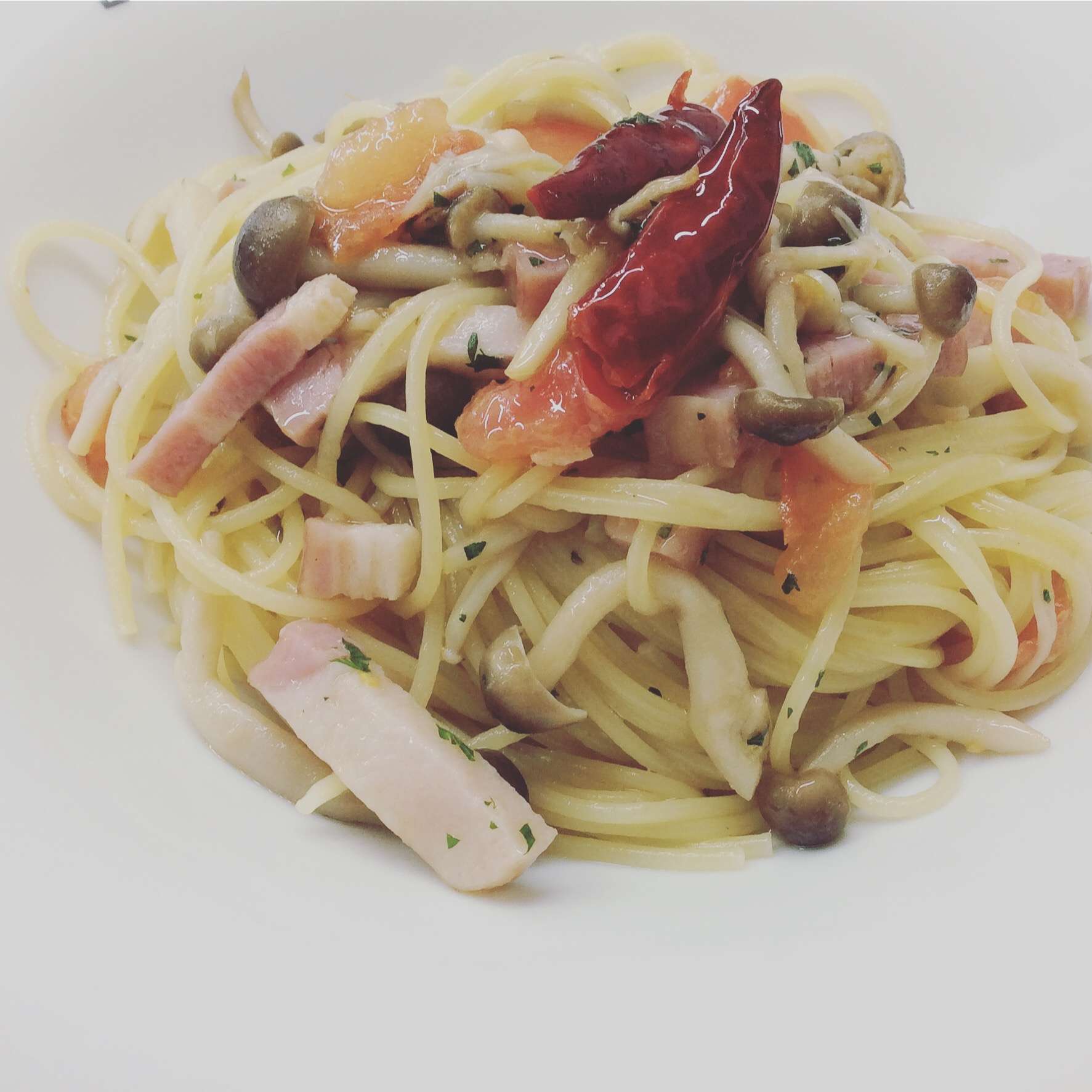 木の子とベーコンとフレッシュトマトのペペロンチーノ 2022/03/10 レストラン&バー・エルコレです。 今週のランチパスタ②木の子とベーコンとフレッシュトマトのペペロンチーノです。 にんにくの風味と唐辛子のピリッとした辛さのペペロンチーノです。 大盛りも出来ます。 ご来店お待ちしてます(^-^)