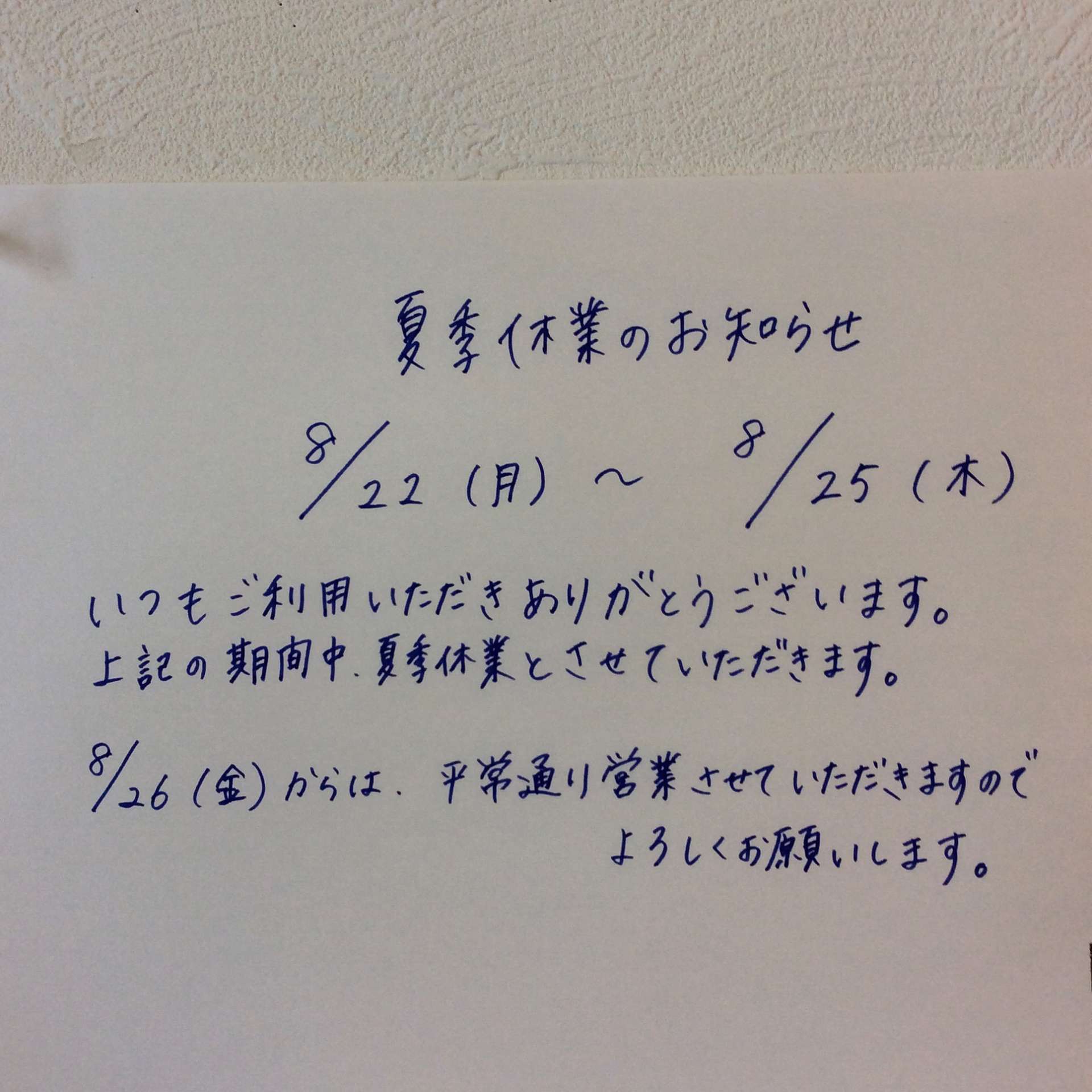 夏季休業のお知らせ 2022/08/02 レストラン&バー・エルコレです。 夏季休業のお知らせです。 8月22日(月)~25日(木)までお休みさせていただきます。 ご理解・ご協力のほどよろしくお願いします。