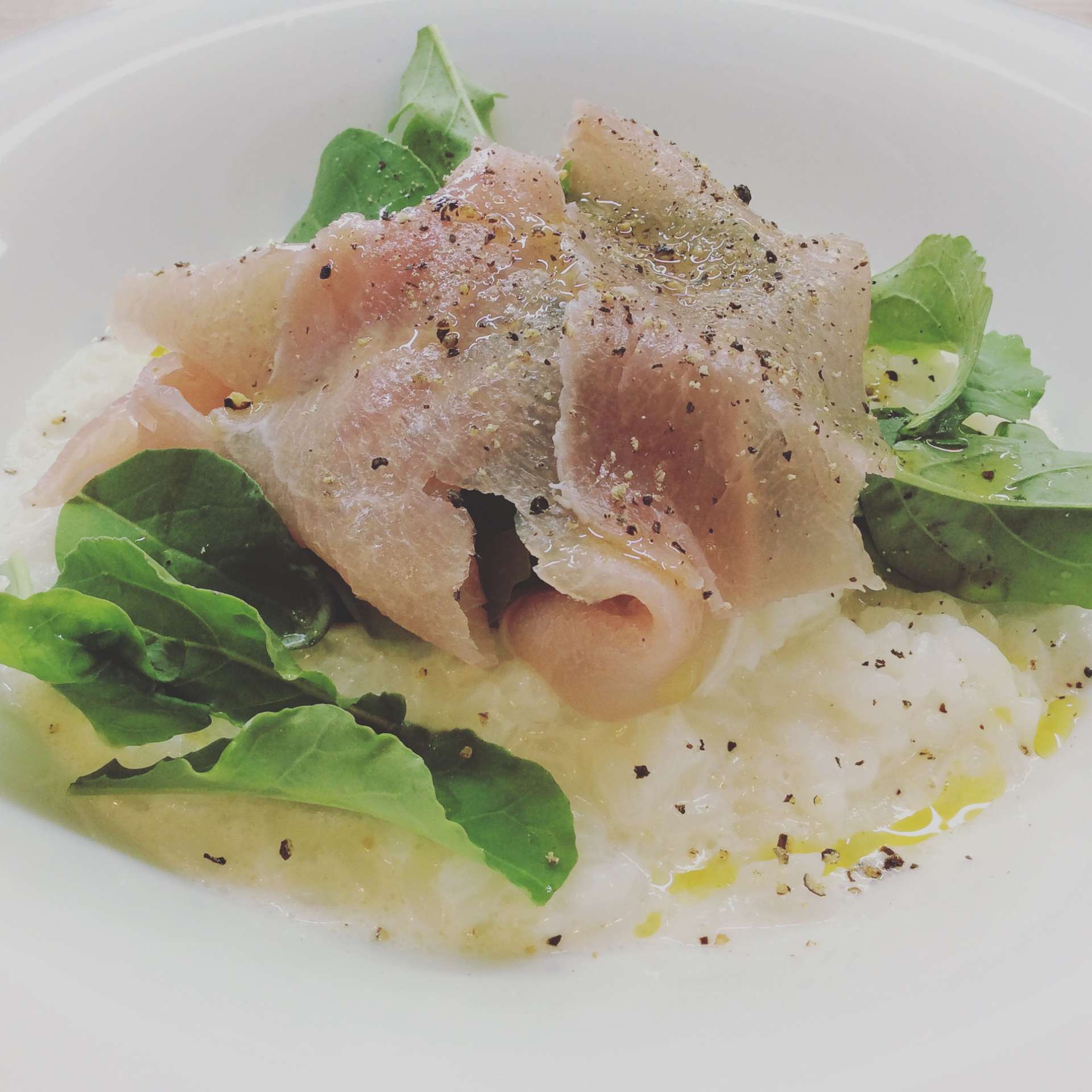 生ハムとルッコラのクリームリゾット 2022/09/26 レストラン&バー・エルコレです。 今週のランチリゾット ④生ハムとルッコラのチーズリゾット ルッコラははーとふる農園のルッコラを使用しています。 生ハムの塩味とクリームが絶妙にバランスいい(・∀・) 平日はグルメパスポートのご利用もお待ちしてます。