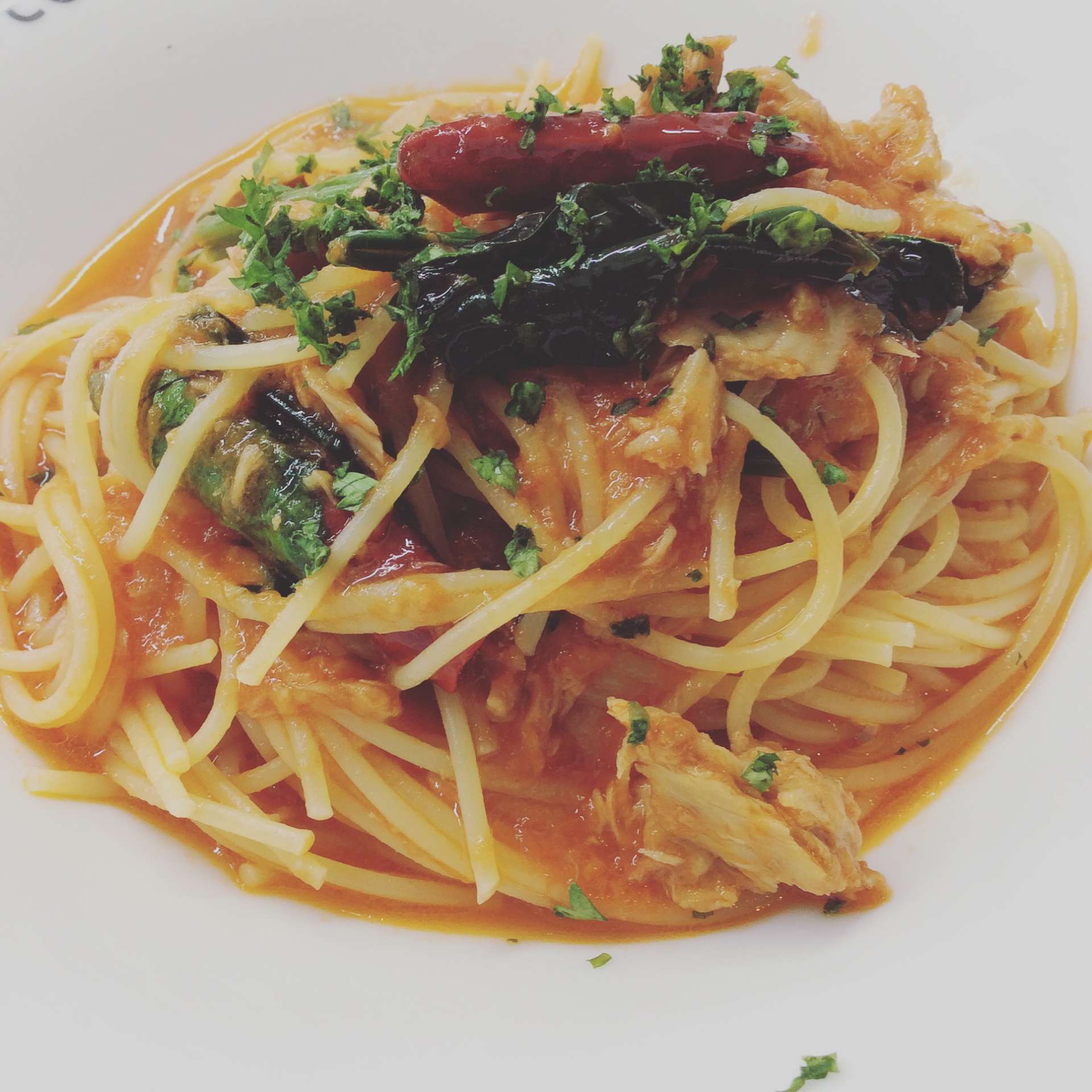 ①ツナとほうれん草のアラビアータ