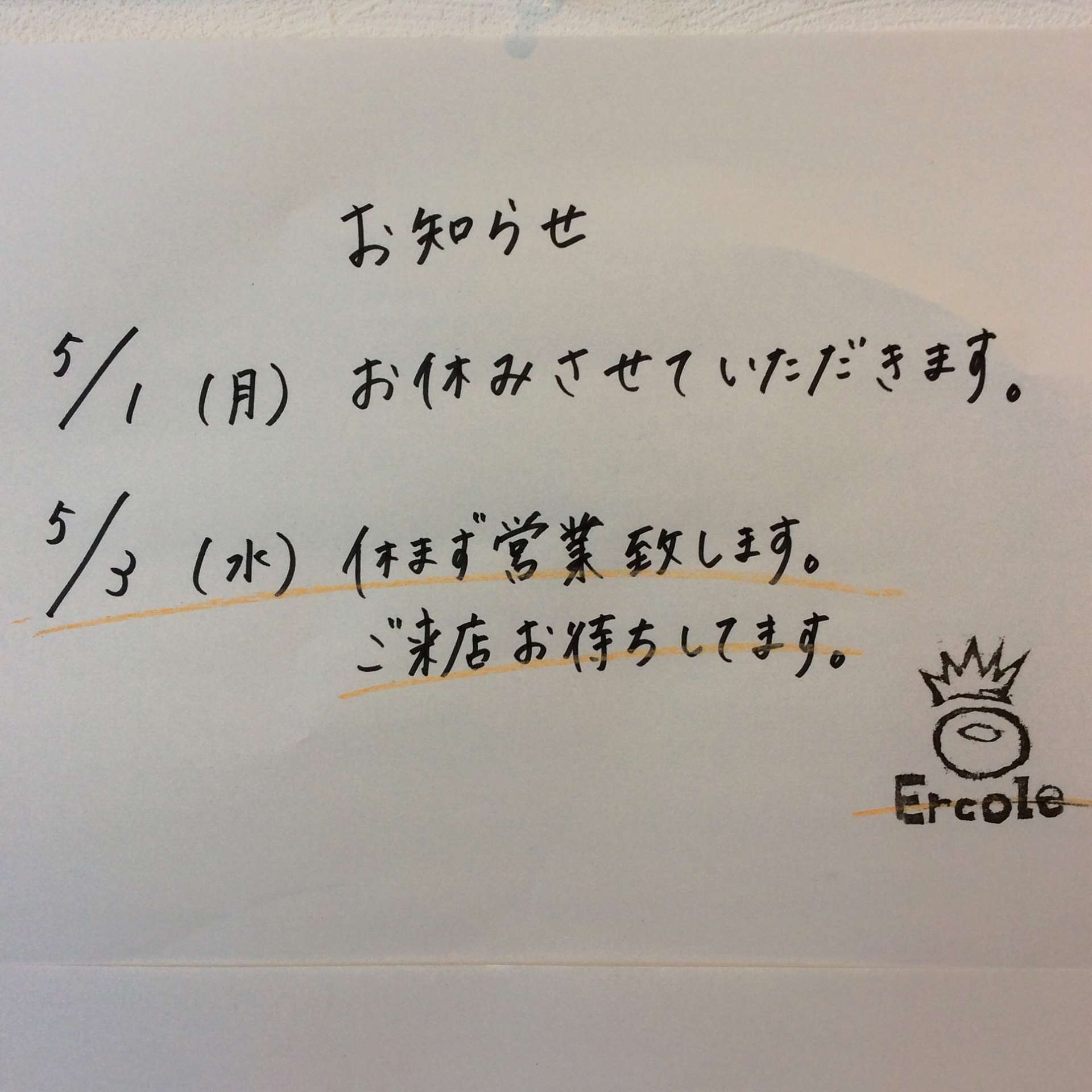 5月3日(水) 臨時営業日