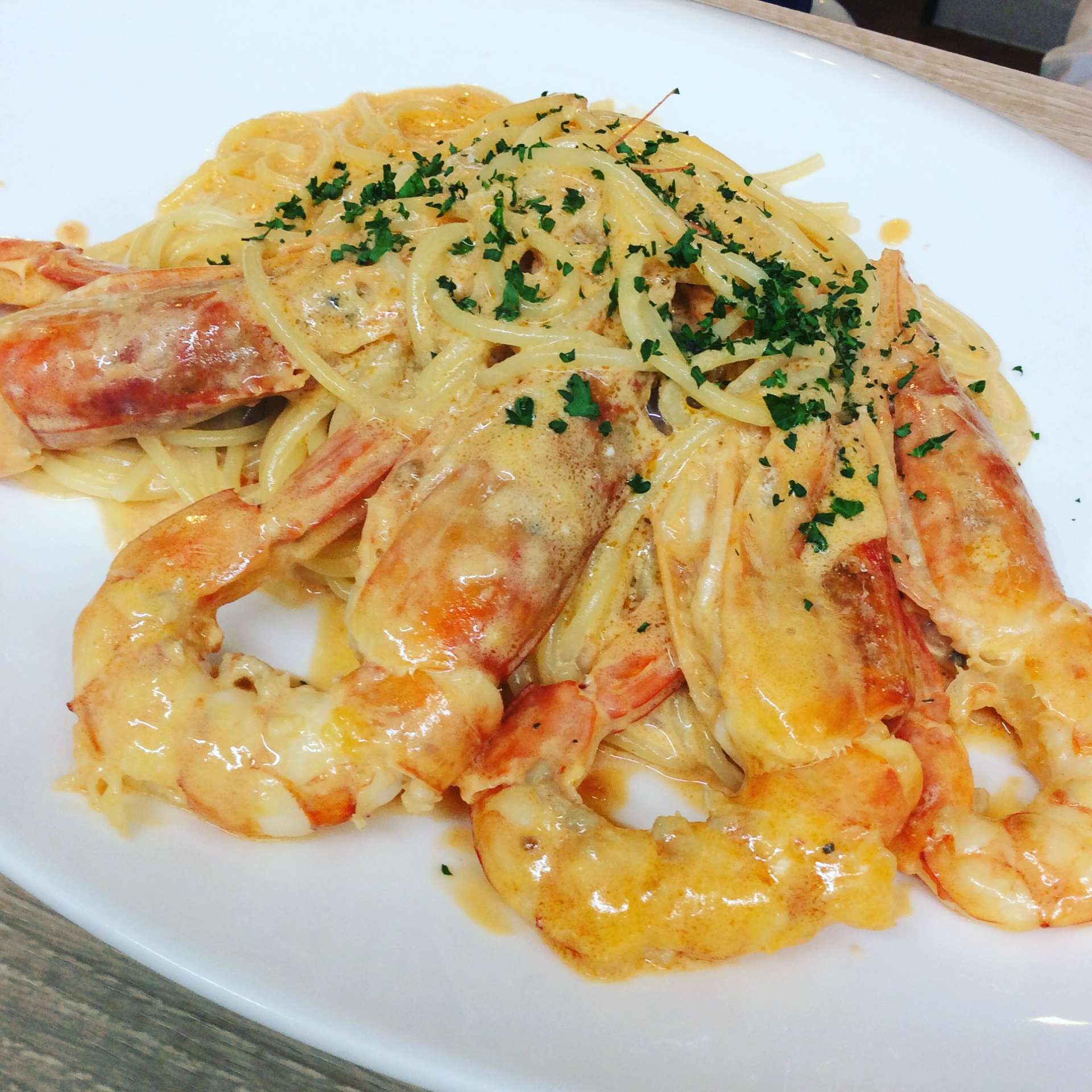 有頭海老のトマトクリームパスタ 2023/05/28 レストラン&バー・エルコレです。 グランドメニューから 【有頭海老のトマトクリームパスタ】 大きな赤海老を使用した濃厚クリームパスタです。 赤海老が、迫力あります。 是非、ご賞味下さい。