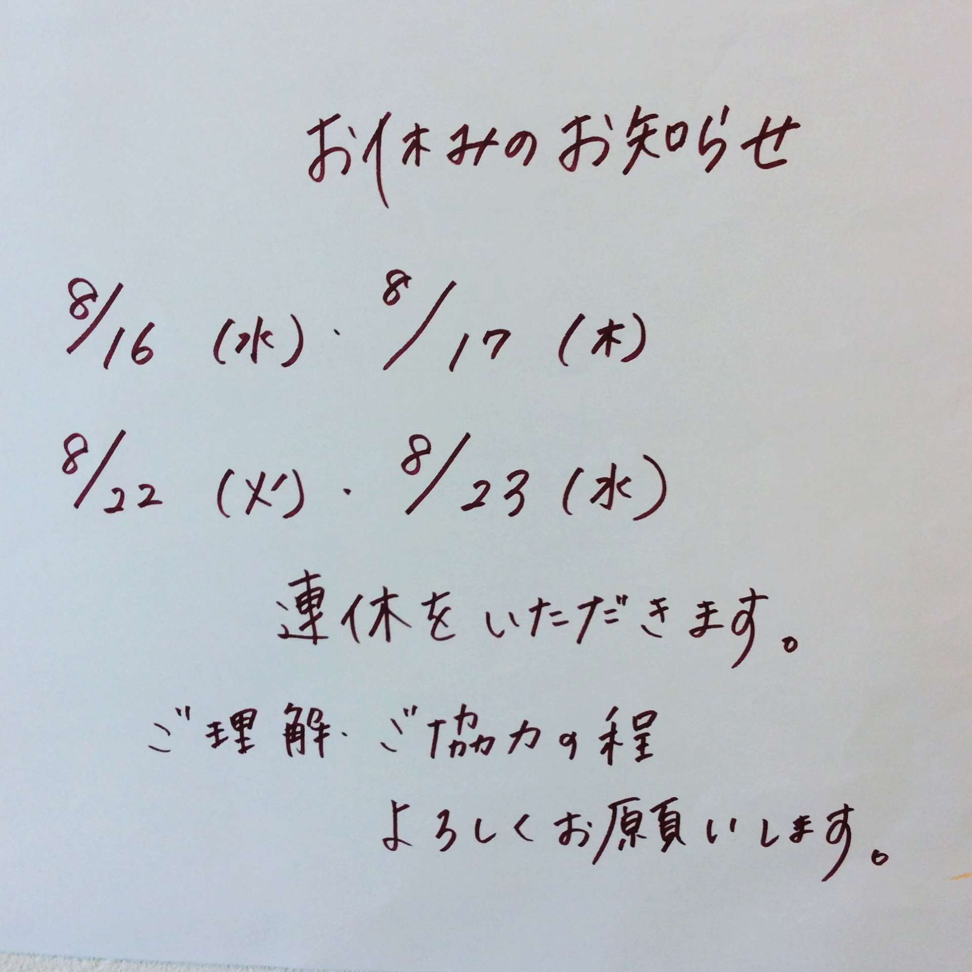 定休日のお知らせ