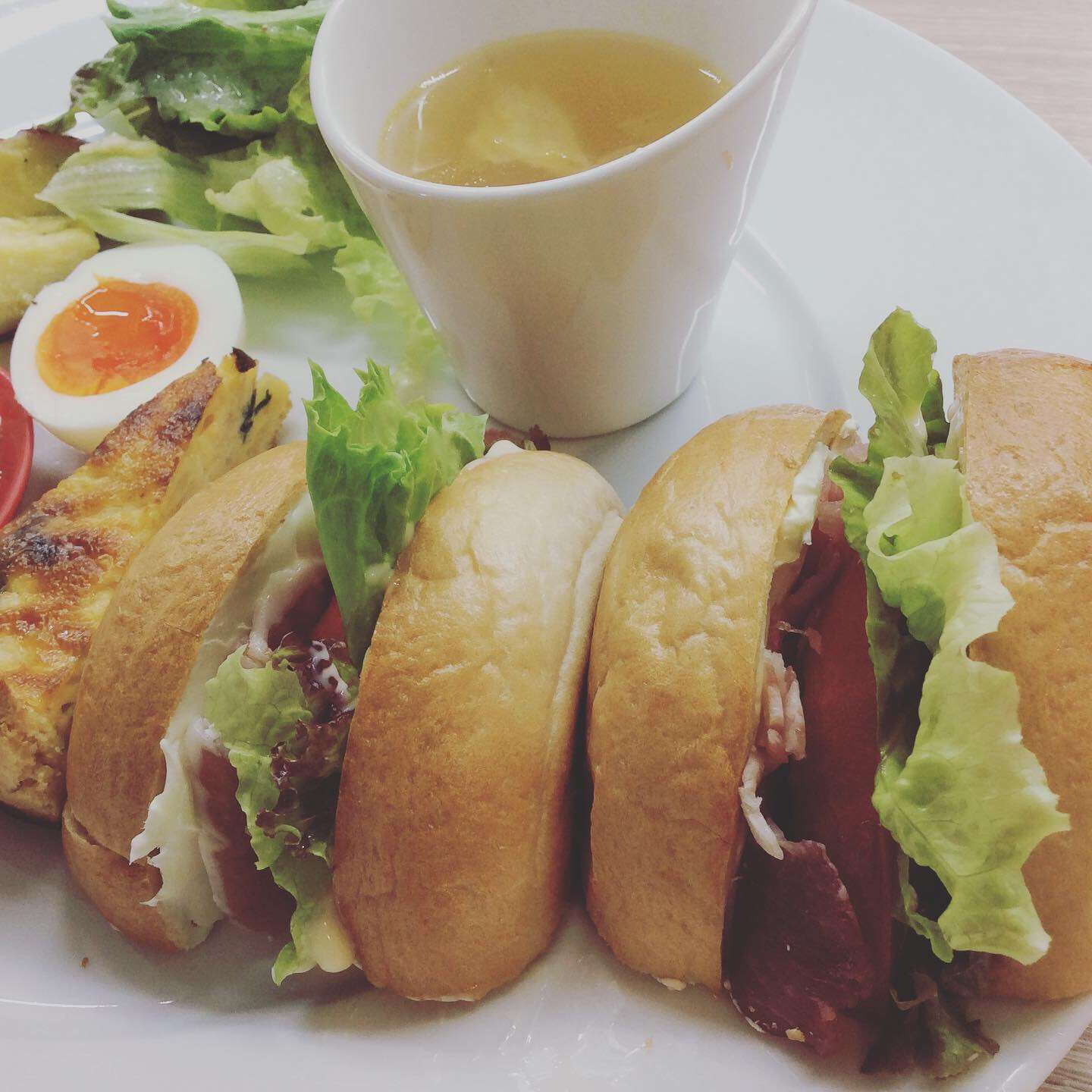 今週のベーグルサンド 2023/10/06 レストラン&バー・エルコレです。 今週のベーグルサンド ①生ハムとクリームチーズの野菜サンド ②イベリコ豚のリエットサンド ベーグルサンドはテイクアウトも大歓迎です。 ご予約いただければお時間に合わせて出来たてとご準備します。 ご利用・ご来店をお待ちしてます。