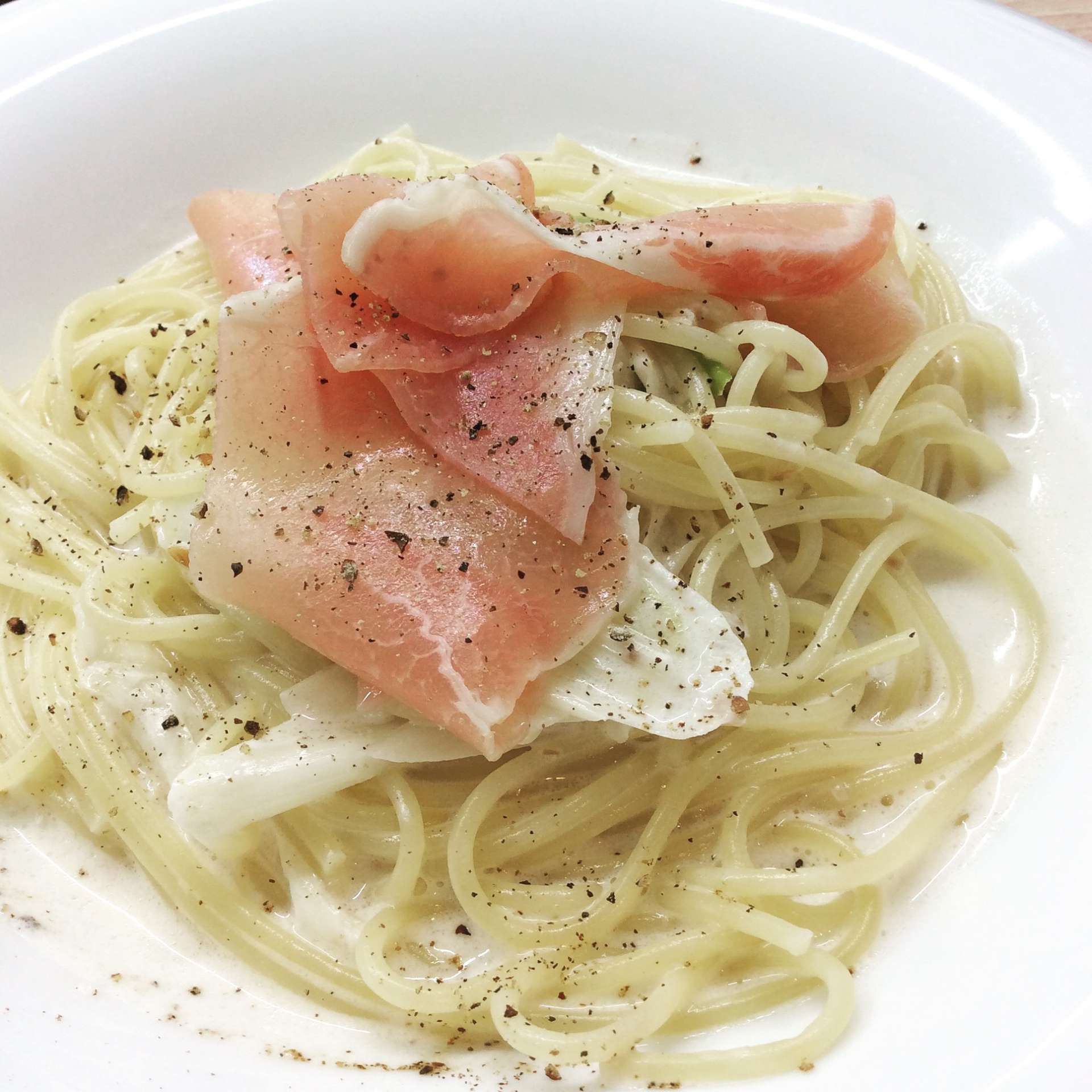 生ハムと長ねぎのクリームパスタ 2023/10/27 レストラン&バー・エルコレです。 今週のランチパスタ ③生ハムと長ねぎのクリームパスタ 生ハムの塩味がちょうどいいクリーミーなパスタです。 是非、ご賞味下さい。 平日はグルメパスポート熊谷のご利用も大歓迎です。 土日ランチありますので、是非ご利用下さい。