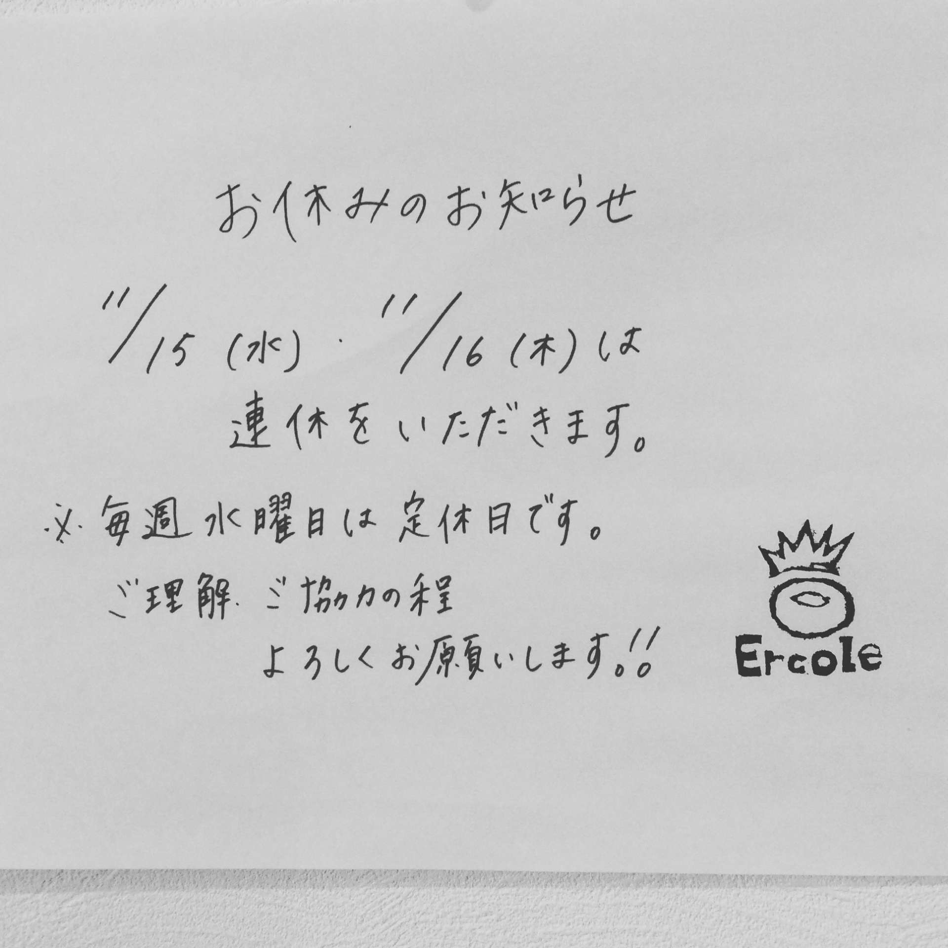 定休日のお知らせ