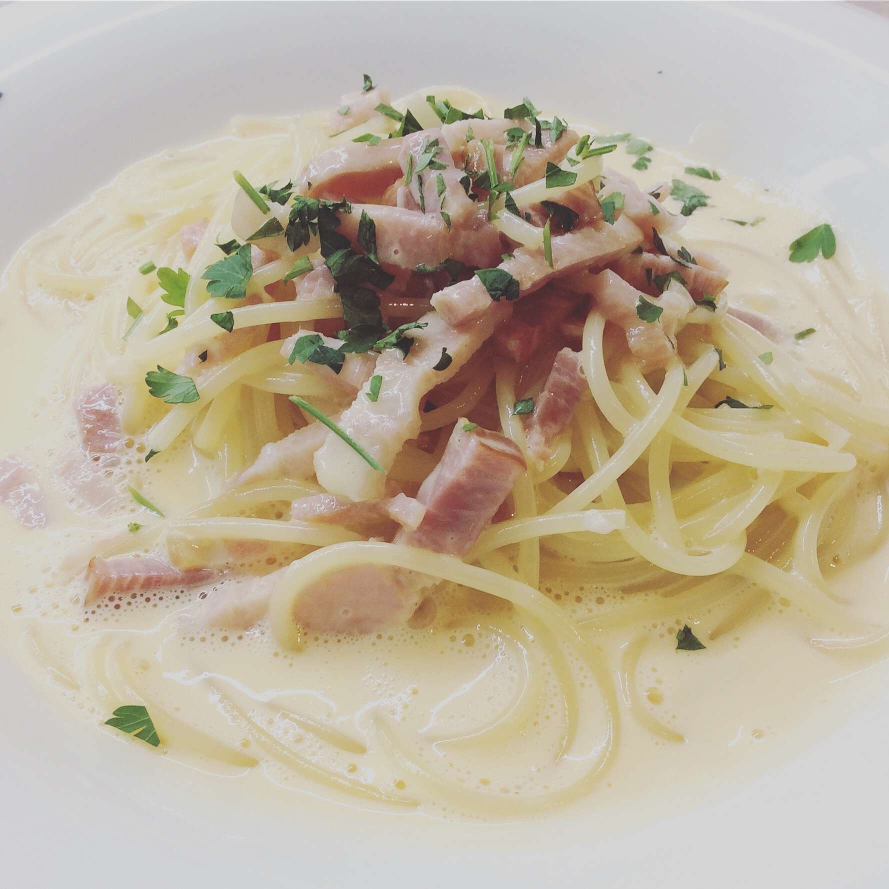 カルボナーラ 2023/12/26 レストラン&バー・エルコレです。 【キッズ・カルボナーラ】 お子様用にブラックペッパー抜きです。 大人の方もご注文可能です。 こっくりしたクリームパスタです。是非ご賞味ください。
