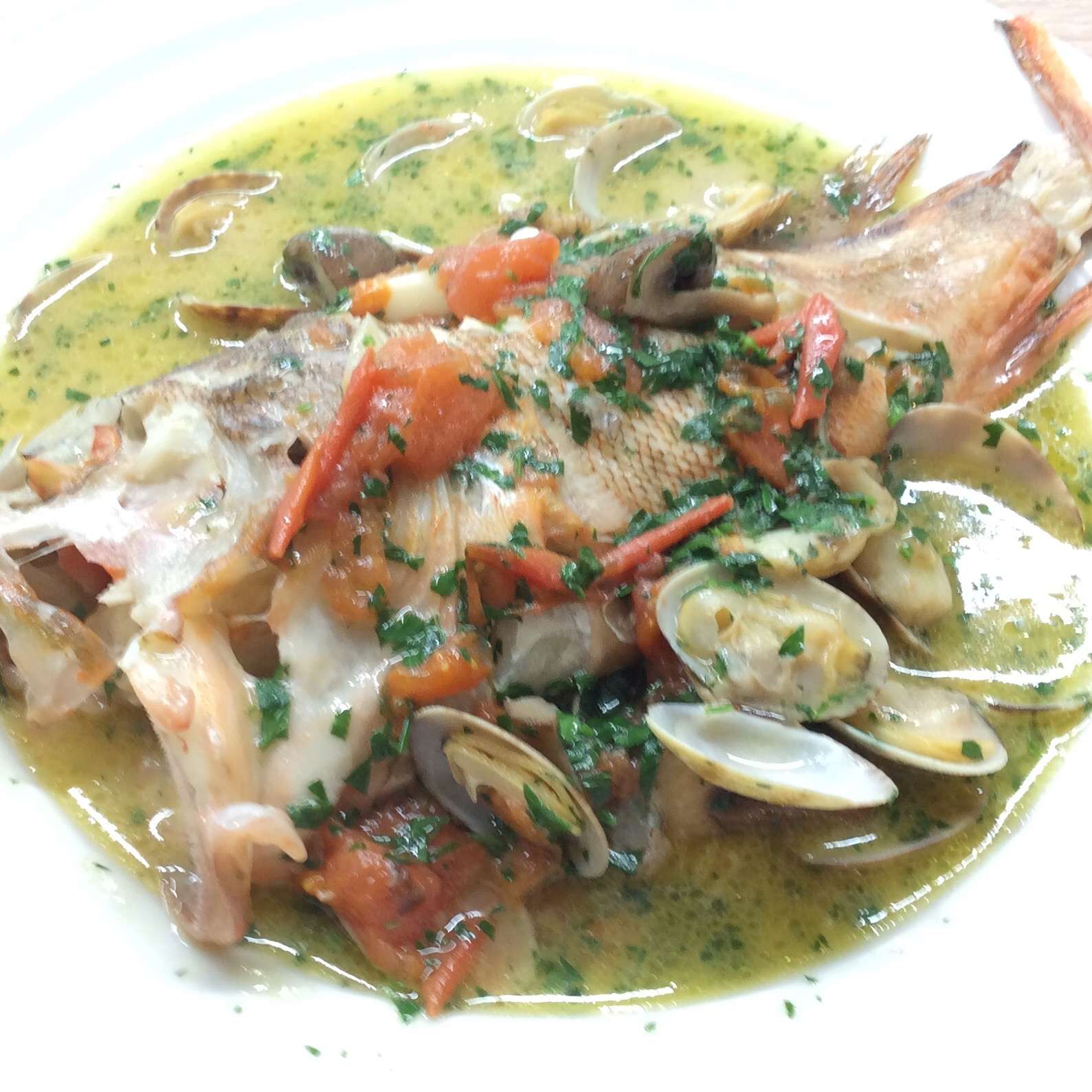 カサゴのアクアパッツァ 2024/05/02 レストラン&バー・エルコレです。 グランドメニューから 【カサゴのアクアパッツァ】 春が旬のカサゴ。 ほくほくのカサゴと魚介の出汁が最高です。 是非ご賞味下さい。