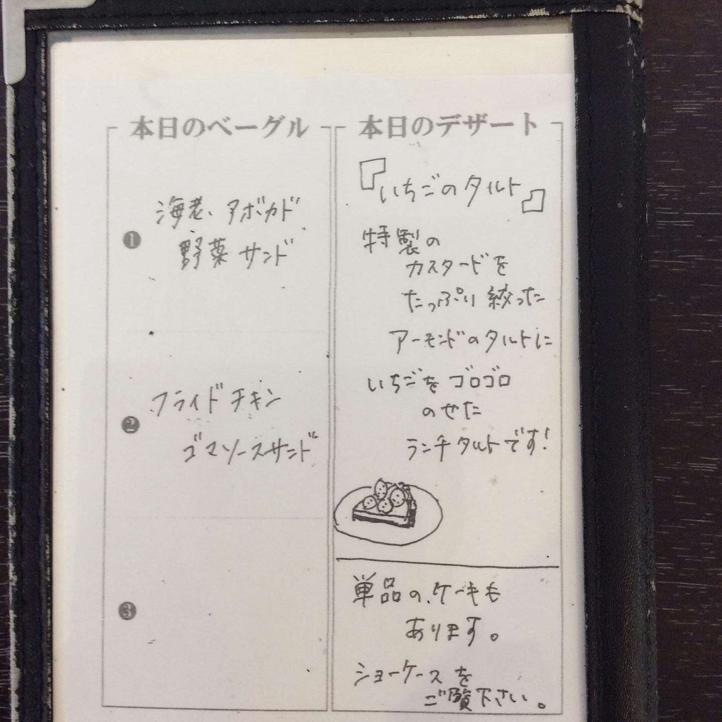 今週のランチメニュー 2024/06/06 レストラン&バー・エルコレです。 6月6日から11日(火)までのランチメニューです。 今週のオススメパスタ ②長ねぎとベーコンとフレッシュトマトのペペロンチーノ オススメベーグル ①海老・アボカド・野菜サンド ランチ限定デザートプレート 【苺タルト】 最後の苺タルトになると思います。 小さいですが、甘すっぱい苺をゴロゴロのせました。 ランチタイムは特別価格でのご提供です。 是非ご賞味下さい。 今週もよろしくお願いします。 ご来店お待ちしてます。