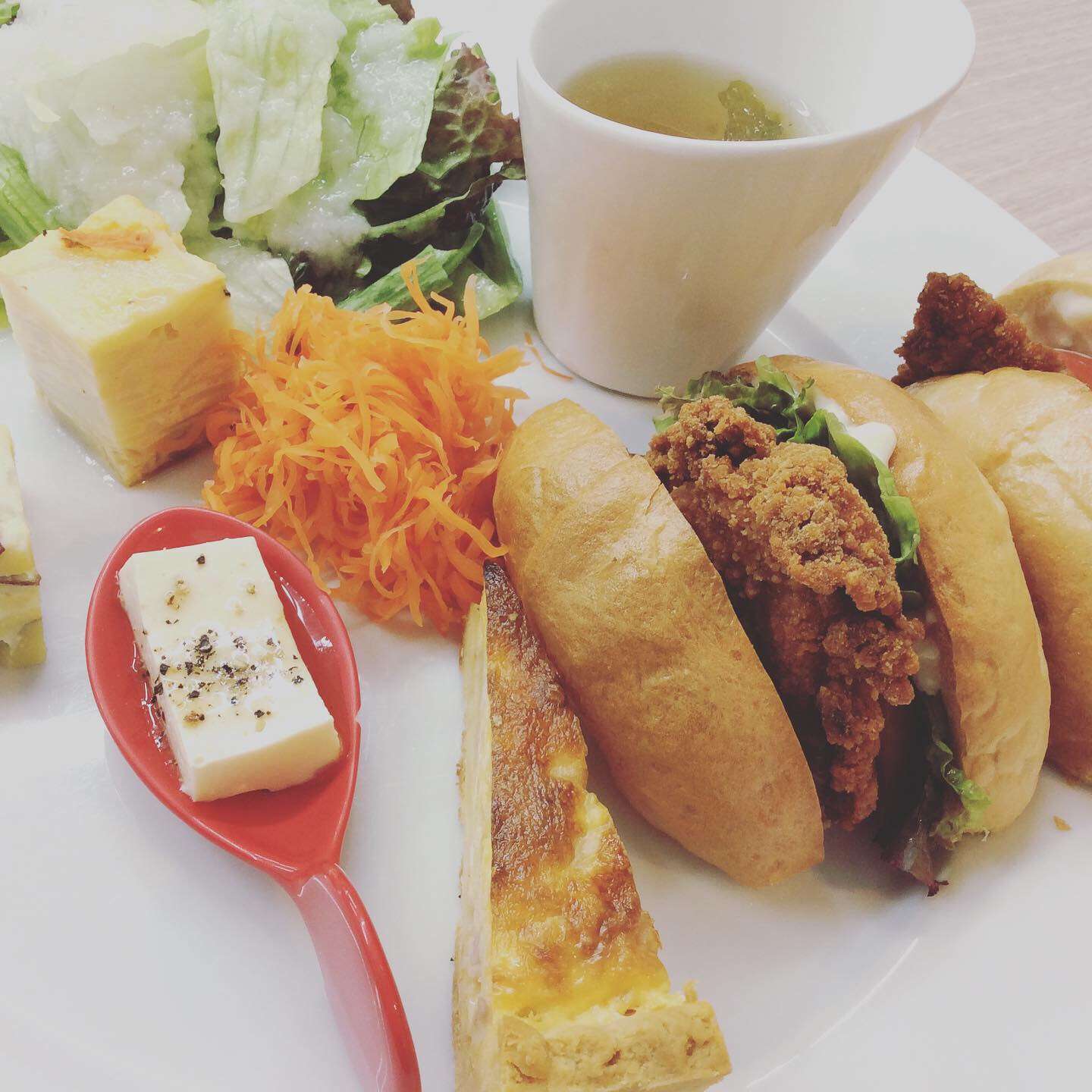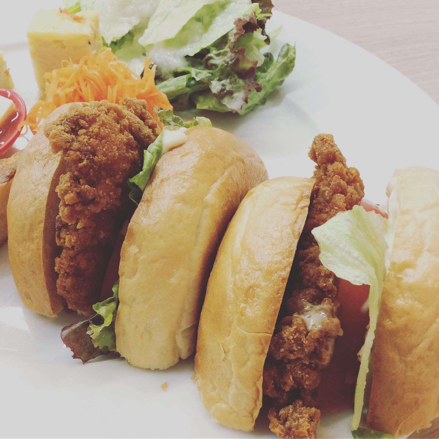 フライドチキン胡麻ソースサンド 2024/06/10 レストラン&バー・エルコレです。 今週のベーグルランチ ②フライドチキン胡麻ソースサンド サックサクでジューシーなフライドチキンをサンドしました。 テイクアウトのご利用も大歓迎です。 是非ご利用下さい。