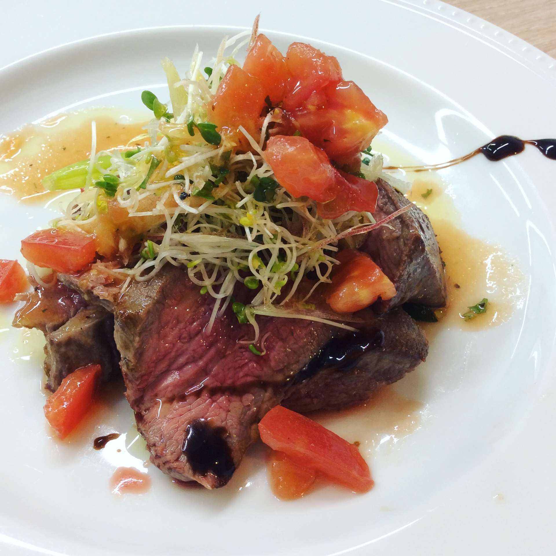 リブロースのタリアータ 2024/06/23 レストラン&バー・エルコレです。 ランチタイムのお肉料理 【リブロースのタリアータ】 お肉が柔らかくオススメの一品です。 バルサミコとフレッシュトマトのケッカソースでのご提供です。 是非ご賞味下さい。