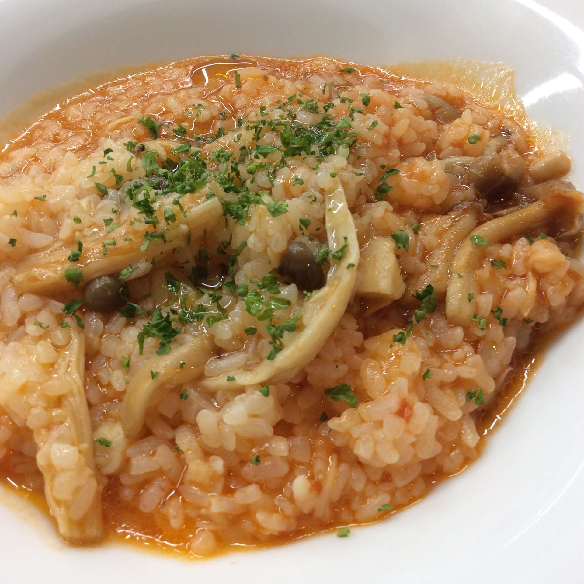 4種の木の子のトマトリゾット 2024/06/28 レストラン&バー・エルコレです。 今週のランチリゾット ④4種の木の子のトマトリゾット マッシュルーム・しめじ・えのき・エリンギの4種の木の子をふんだんに入れました。 自家製トマトソースで作る人気のトマトリゾットです。 是非ご賞味下さい。