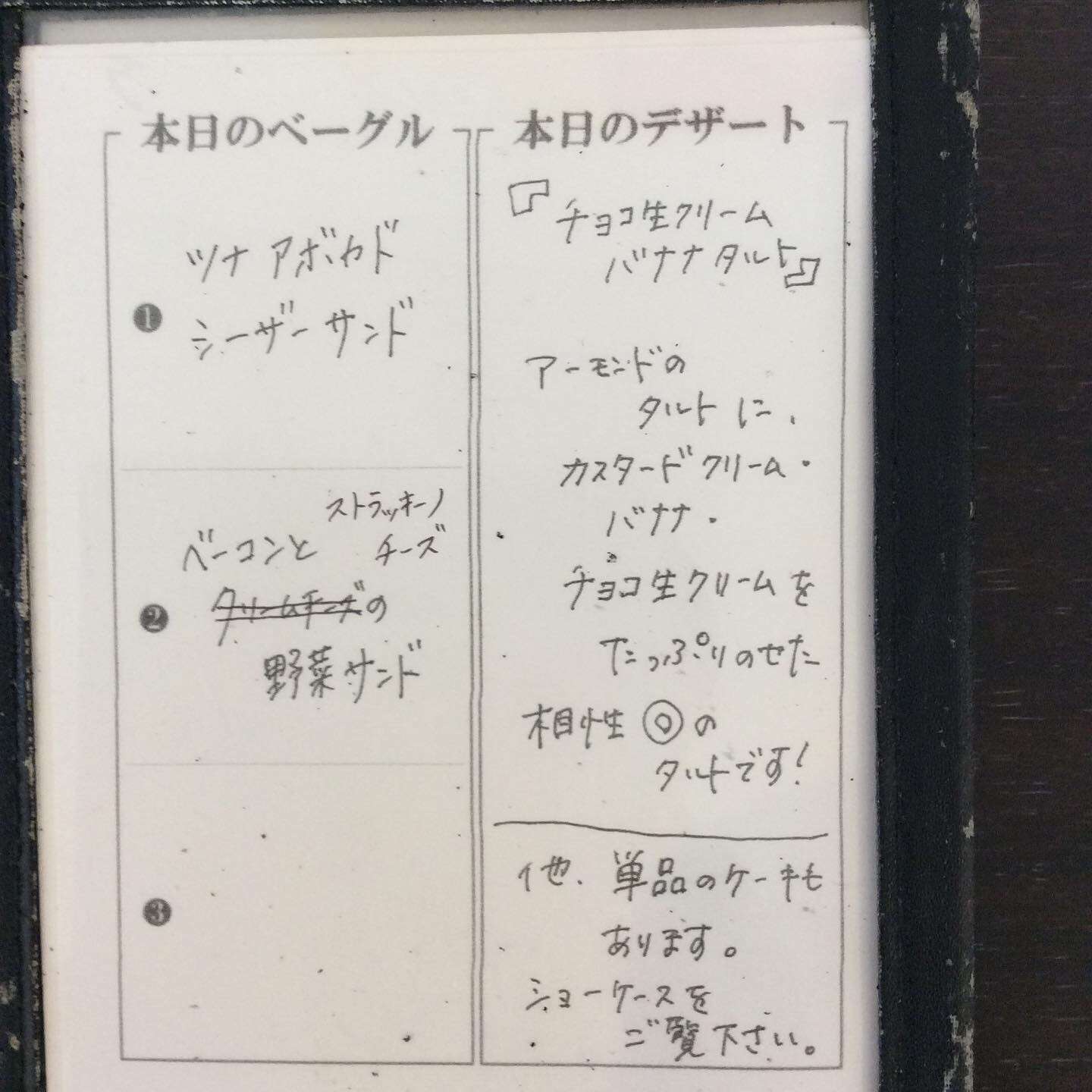 今週のランチメニュー 2024/10/17 レストラン&バー・エルコレです。 17日~22日(木)までのランチメニューです。 今週のオススメパスタ ①ナポリタン オススメベーグル ②ベーコンとストラッキーノチーズと野菜のサンド ランチ限定デザートプレート 【チョコ生クリームバナナタルト】 ランチタイムは限定価格でご提供します。 ご来店お待ちしてます。