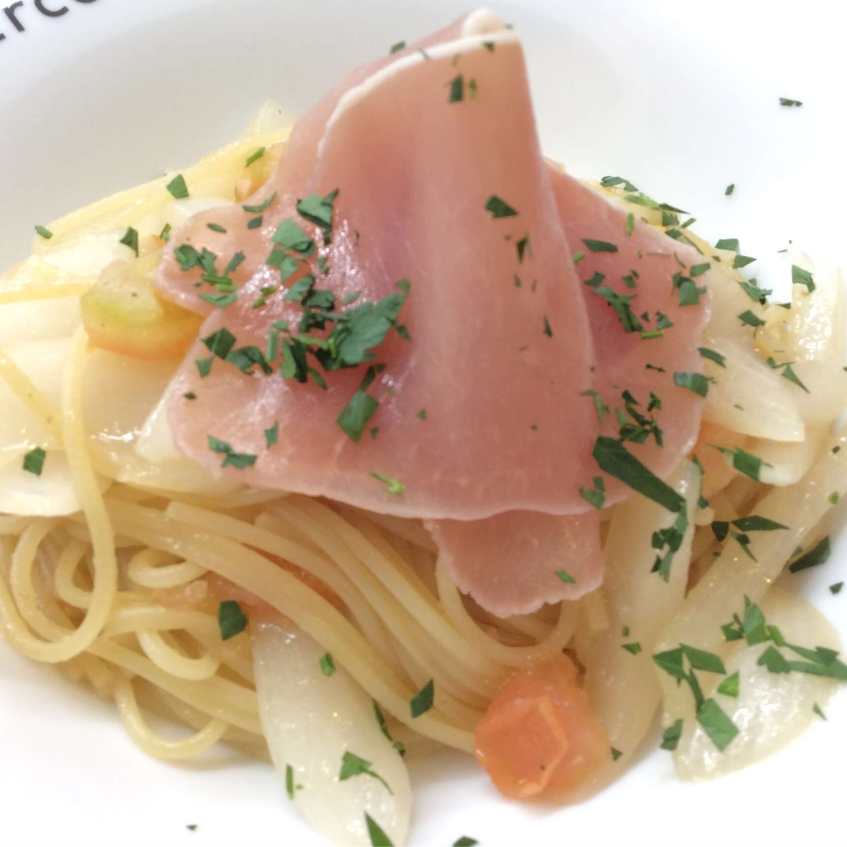 生ハムと新玉ねぎとフレッシュトマトのアーリオーリオ 2025/05/01 レストラン&バー・エルコレです。 今週のランチパスタ ②生ハムと新たまねぎとフレッシュトマトのアーリオーリオ 新玉ねぎの時期になりました。 生ハムの塩味を活かし、、見た目も綺麗なアーリオーリオです。 是非、ご賞味下さい。