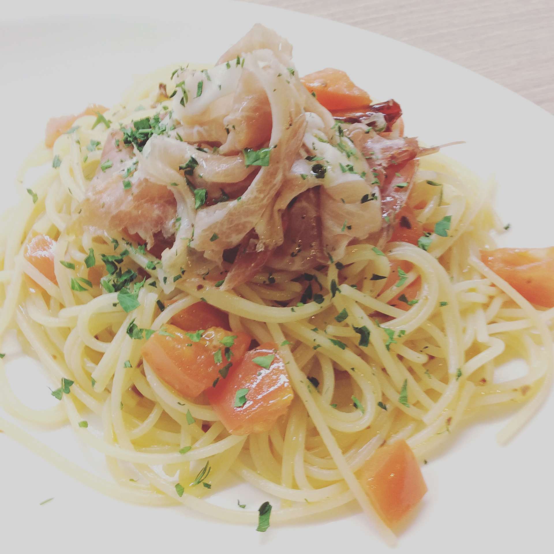 イタリアンプロシュートのペペロンチーノ 2025/05/12 レストラン&バー・エルコレです。 【イタリアンプロシュートのペペロンチーノ】 シンプルなペペロンチーノにイタリアンプリシュートを合わせました。 あっと言う間になくなっちゃう美味なペペロンチーノです。 是非ご賞味下さい。