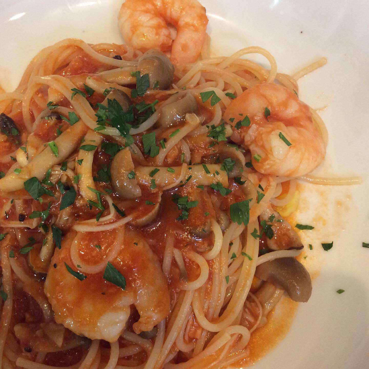 ①海老とキノコのポモドーロ