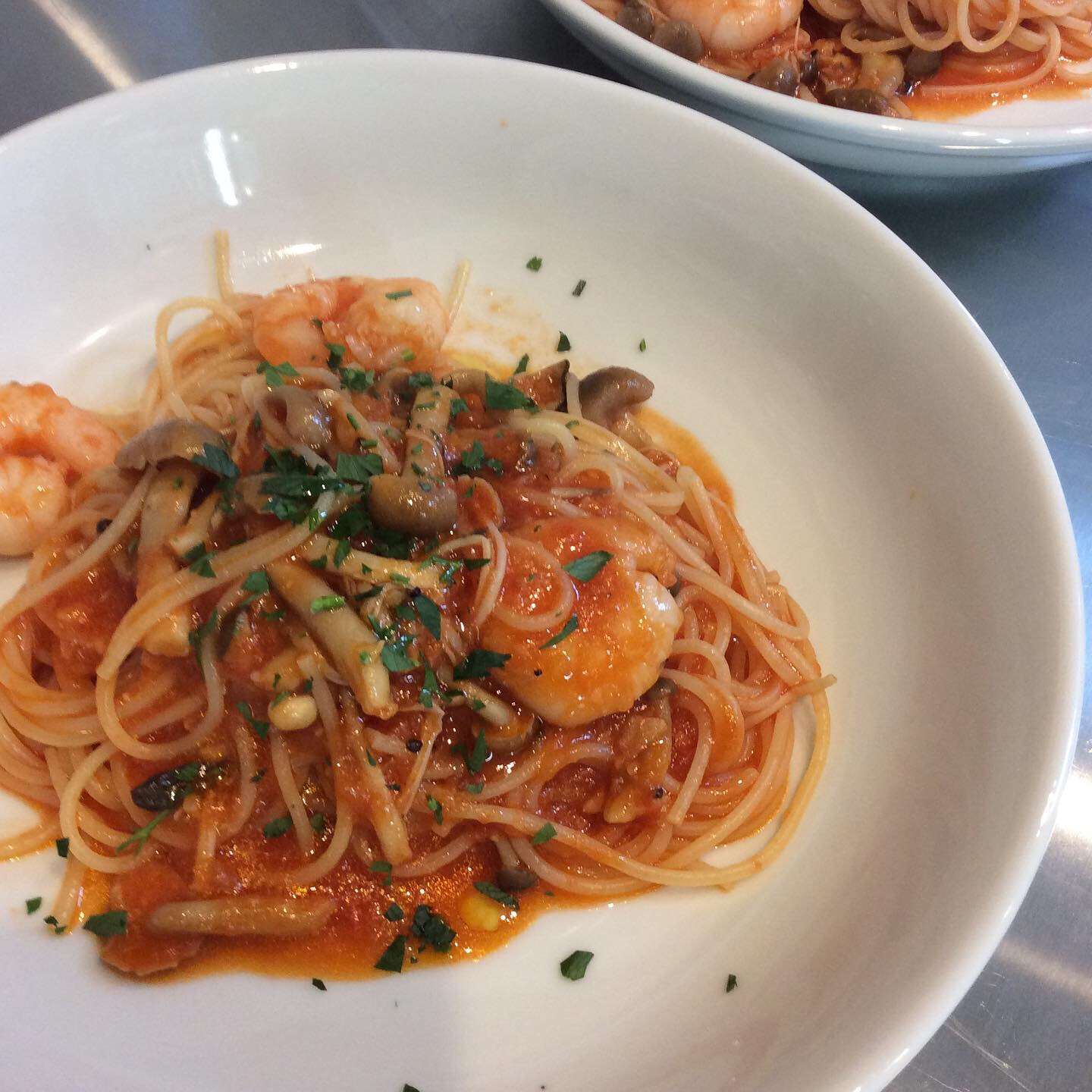 ぷりぷりの海老を使ったトマトパスタです。