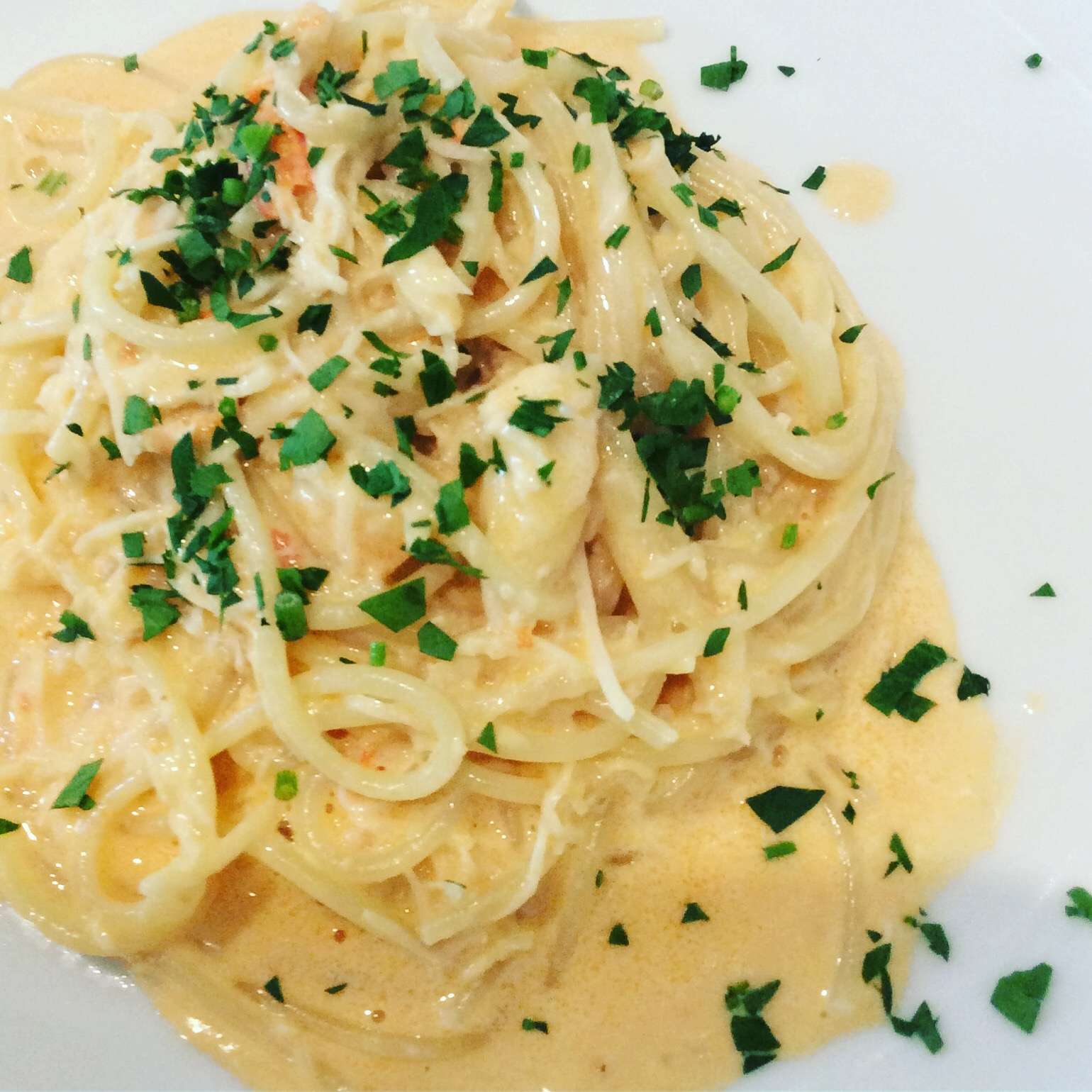 ずわい蟹のクリームパスタ 2025/09/26 レストランブラウンです。 コース料理のパスタ 《ずわい蟹のクリームパスタ》 濃厚なクリームパスタとずわい蟹がマッチしたパスタです。 コースのご予約お待ちしております。
