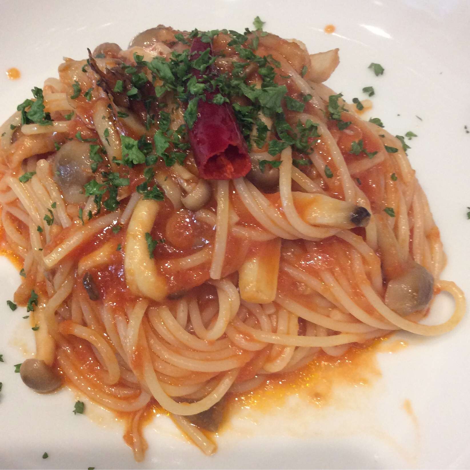 色んなきのこのアラビアータ 2025/10/16 レストランブラウンです。 今週のランチパスタ A 色んなきの子のアラビアータ エノキ・しめじ・えりんぎ・マッシュルーム・平茸・舞茸のいろんなきの子です。 ピリッと辛い自家製トマトソースのアラビアータ。 是非ご賞味ください。